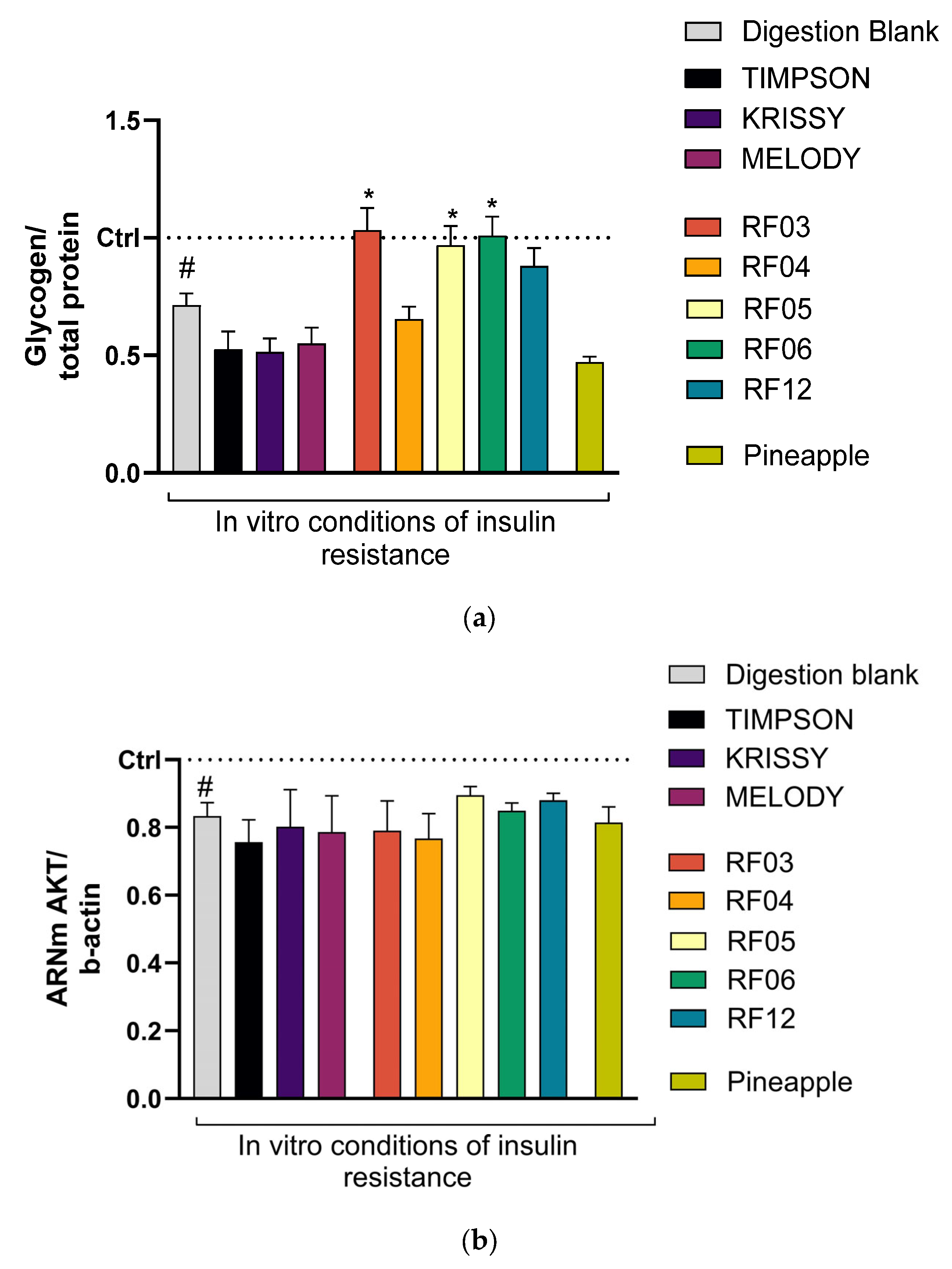 3.5. Changes in Insulin Resistance Biomarkers (Glycogen) in the Liver Model