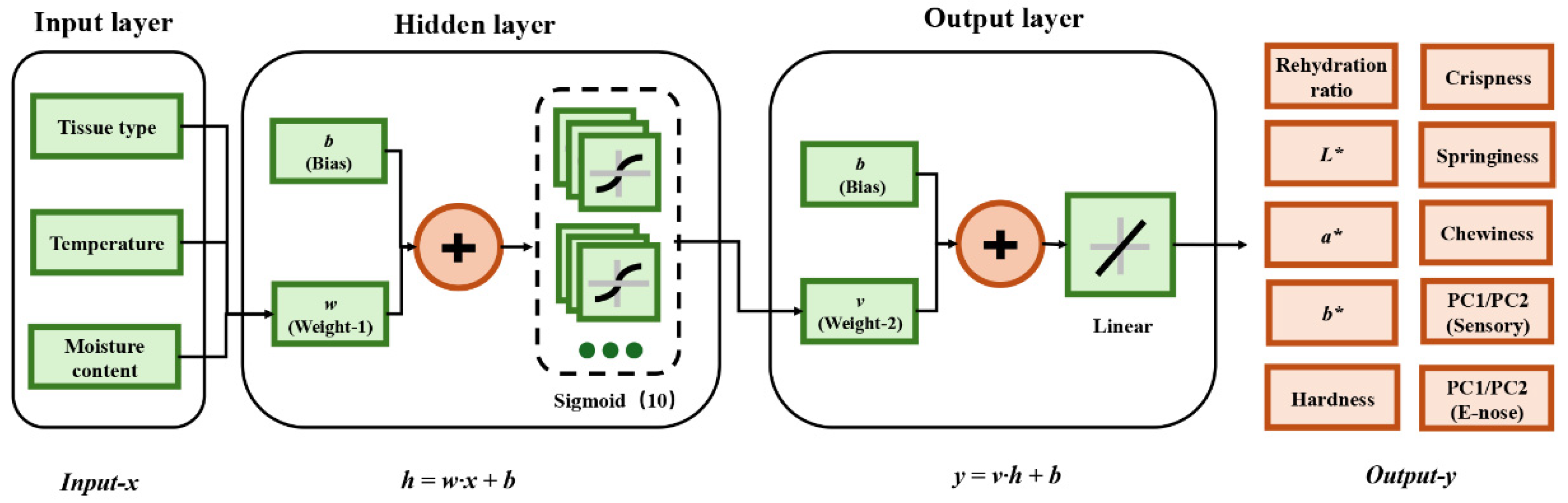 - Niamnuy, C.; Kerdpiboon, S.; Devahastin, S. Artificial neural network modeling of physicochemical changes of shrimp during boiling. LWT Food Sci. Technol. 2012, 45, 110–116. [Google Scholar] [CrossRef]