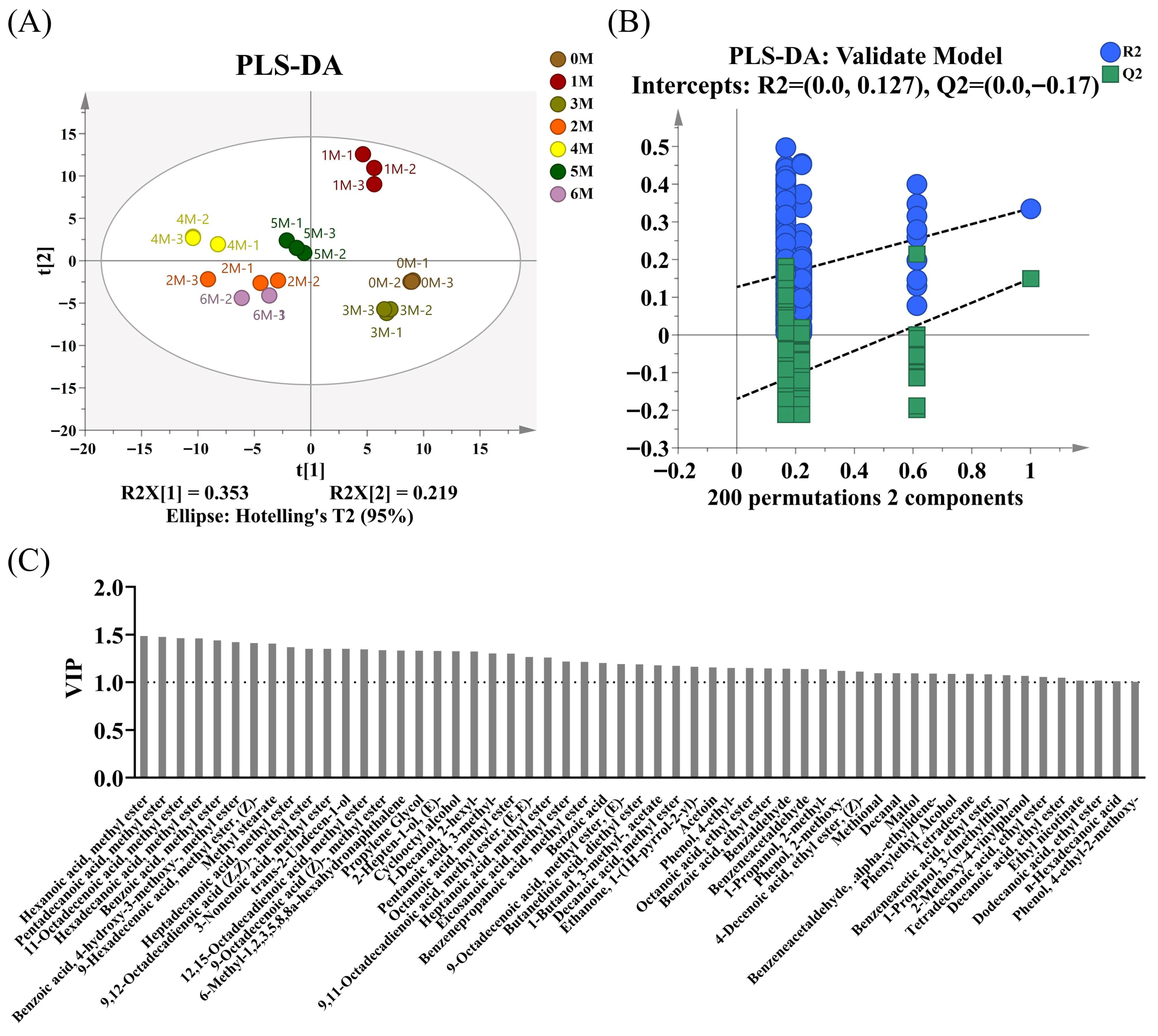 | Benzoic acid, methyl ester | 73 | floral, fruity | <1 | 7.56 | <1 | <1 | 1.59 | 1.82 | 0.73 |