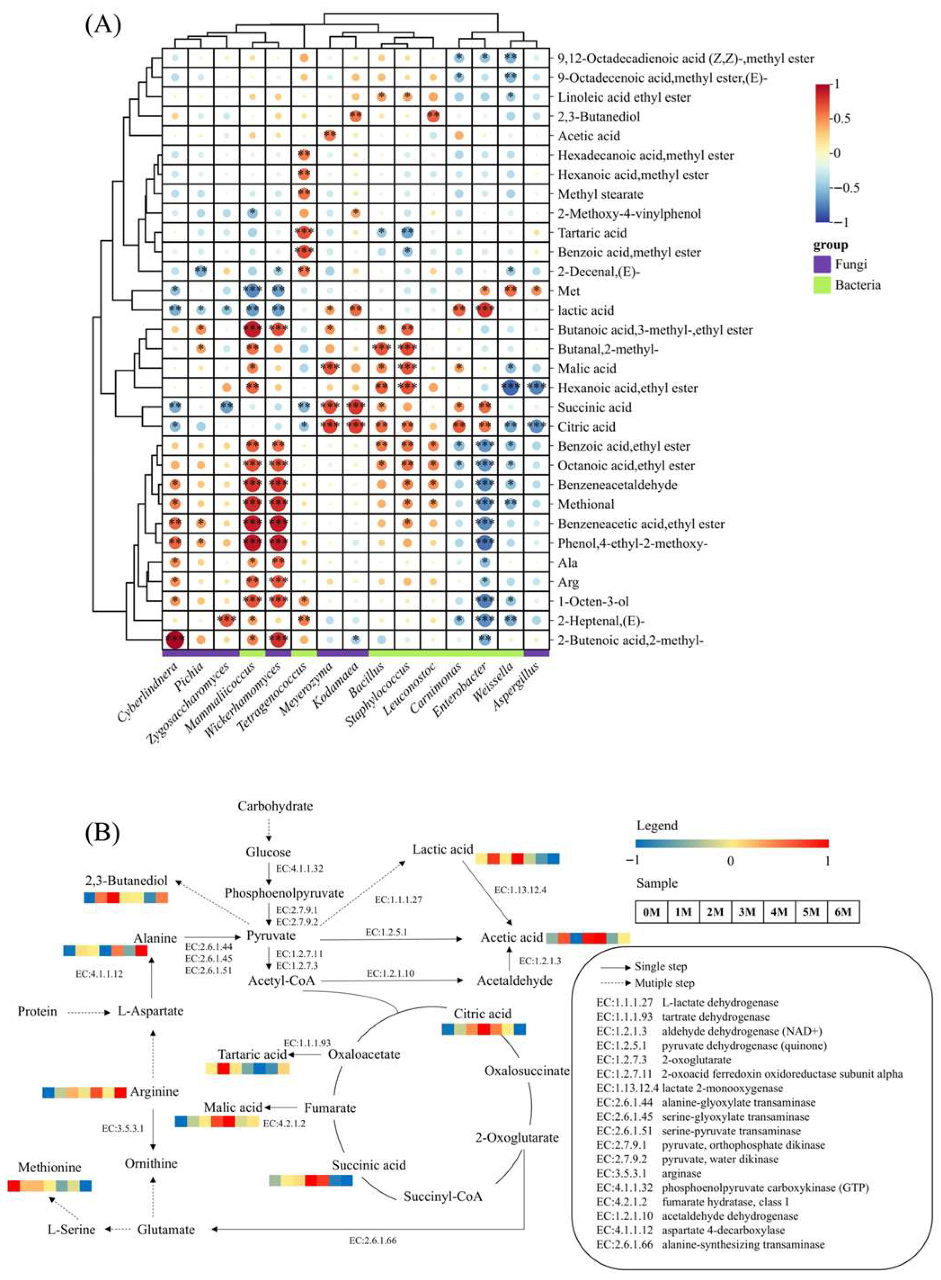 3.6. The Association Between Microorganisms and Specific Volatile Flavor and Taste Substances