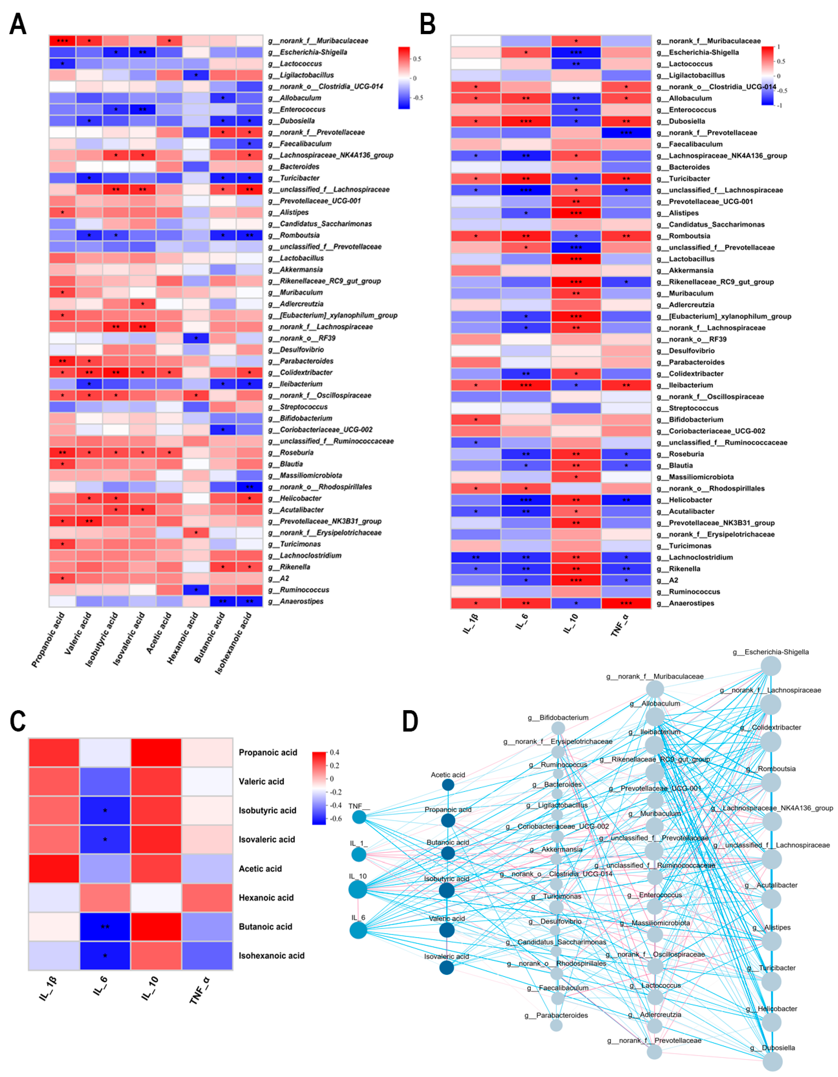3.6. Interrelationship Analysis Between Gut Microbiota, SCFAs, and Inflammatory Factors