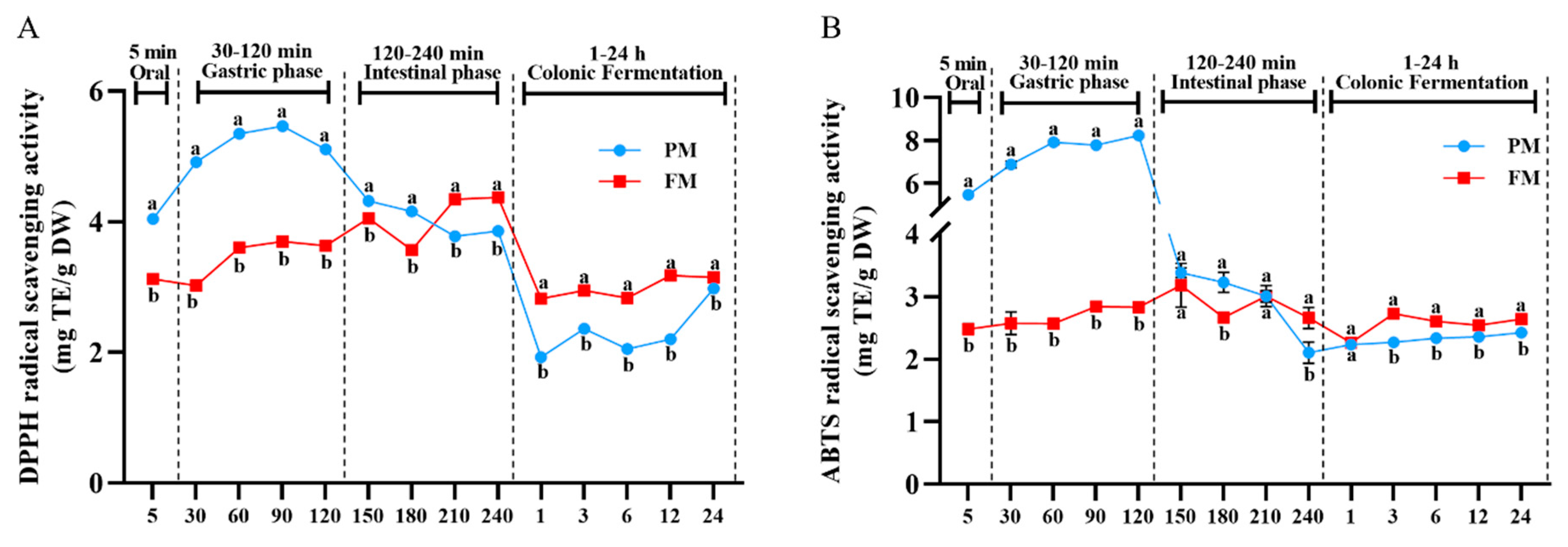 2.3. In Vitro Simulated Gastrointestinal Digestion