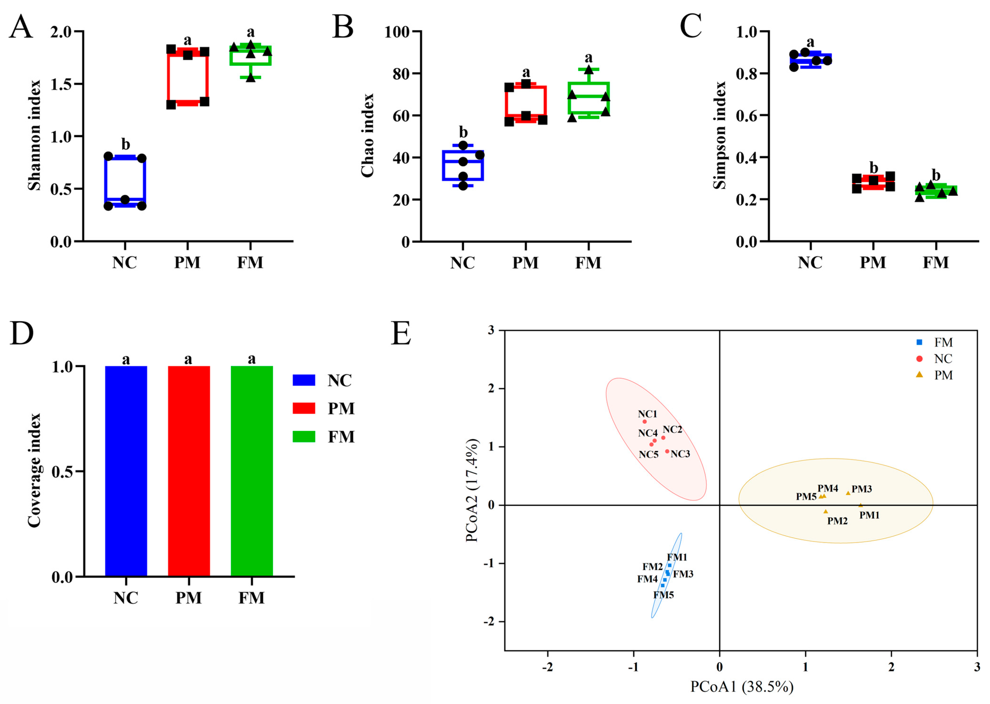 | FM | 0.49 ± 0.04 bB | 0.65 ± 0.06 bA | 0.70 ± 0.07 bA | 0.46 ± 0.05 bB | 0.04 ± 0.01 bC | ||