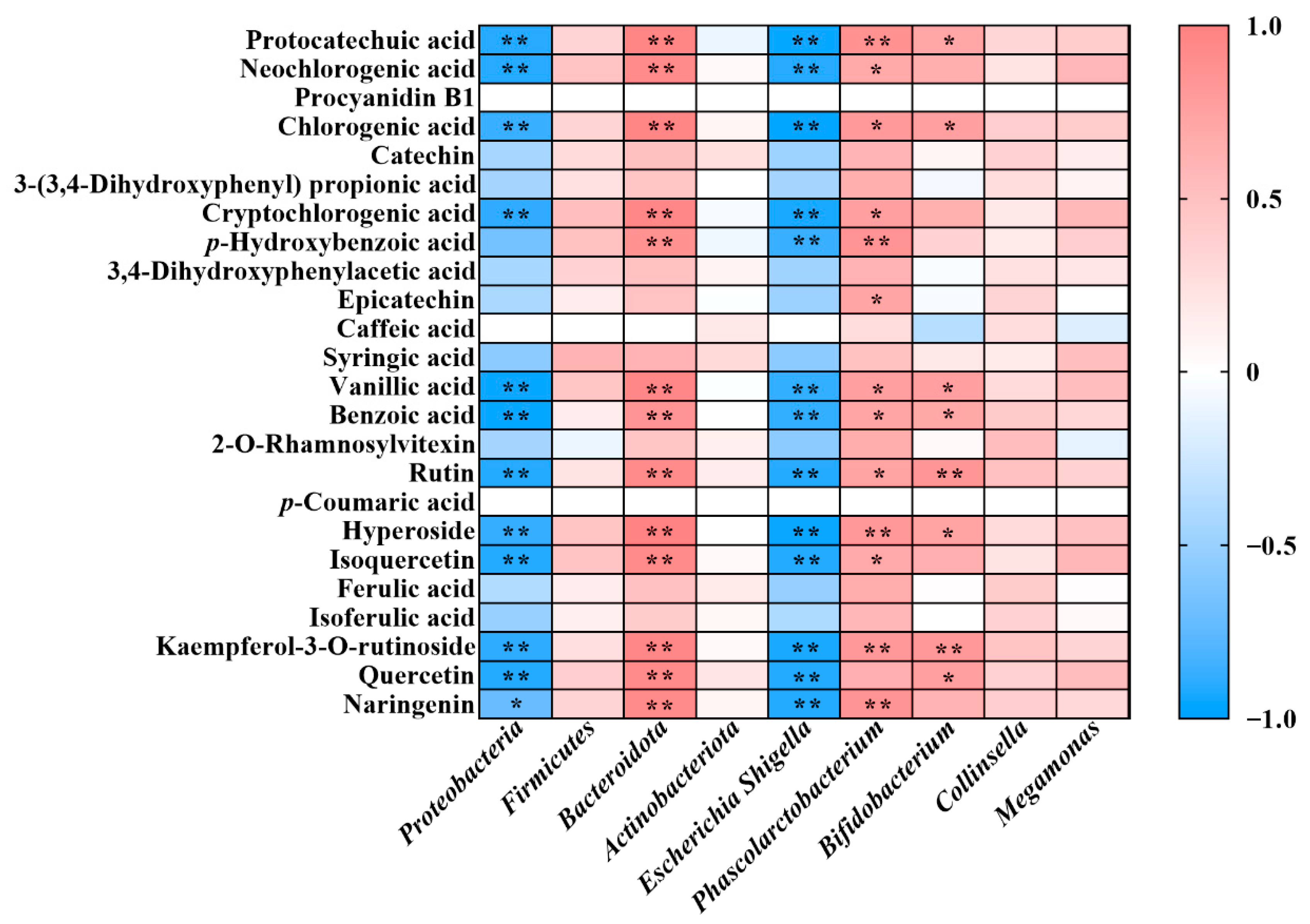 3.5. Correlation Between Phenolics Compounds and Gut Microbiota