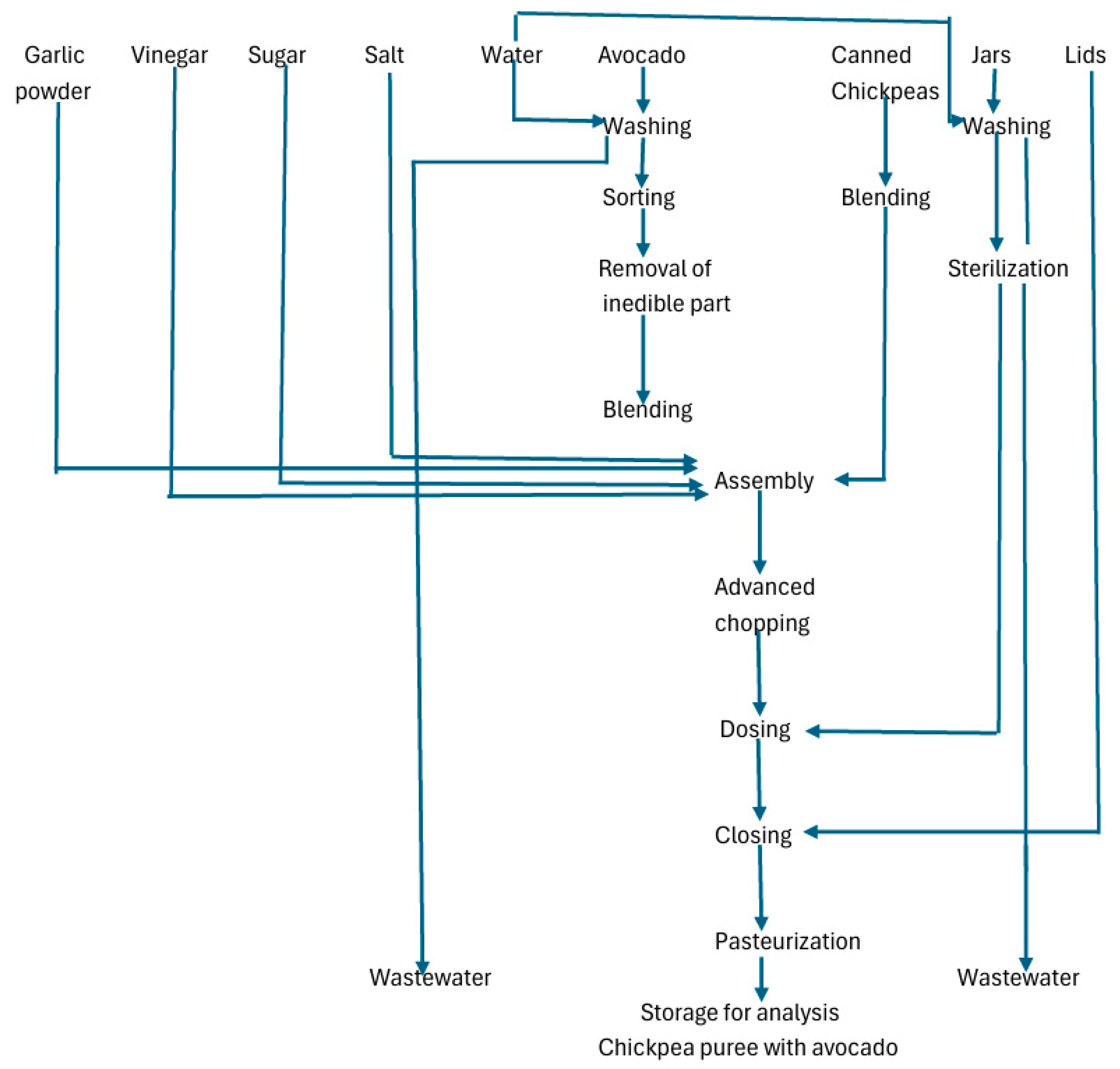 3.1.1. Technological Flow in the Manufacture of Chickpea Puree with Avocado