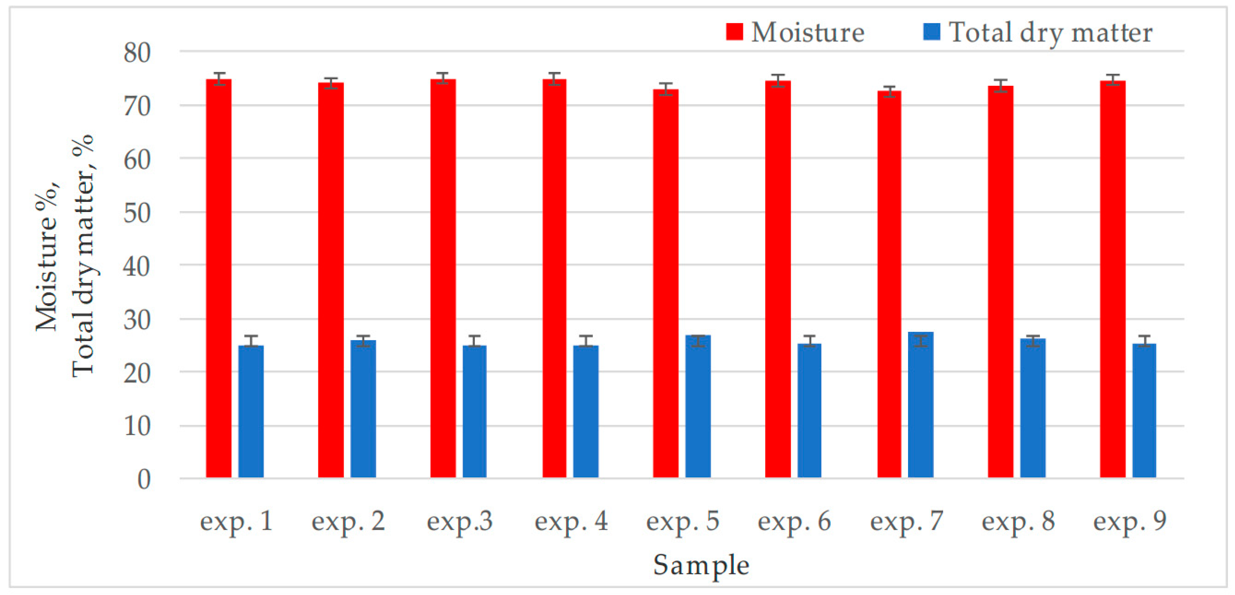 | Total dry matter, % | 33.47 ± 0.81 | 10.9 ± 0.33 |