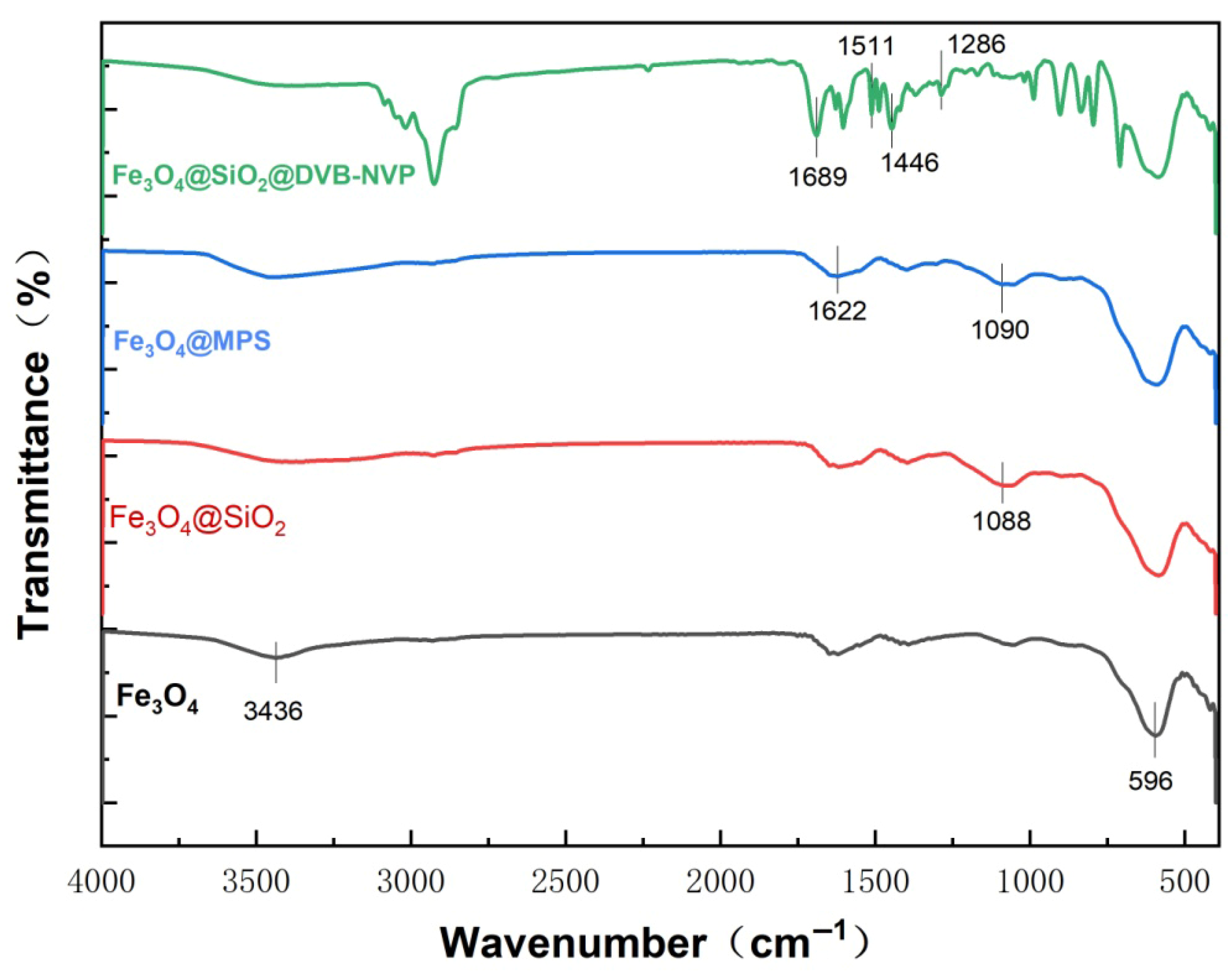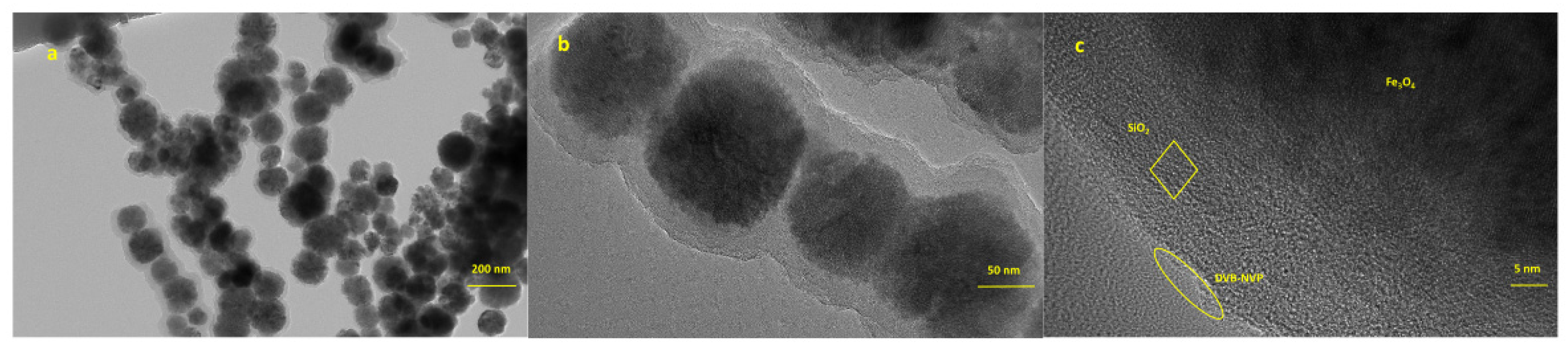 2.4.1. Preparation of Fe3O4@SiO2@DVB-NVP