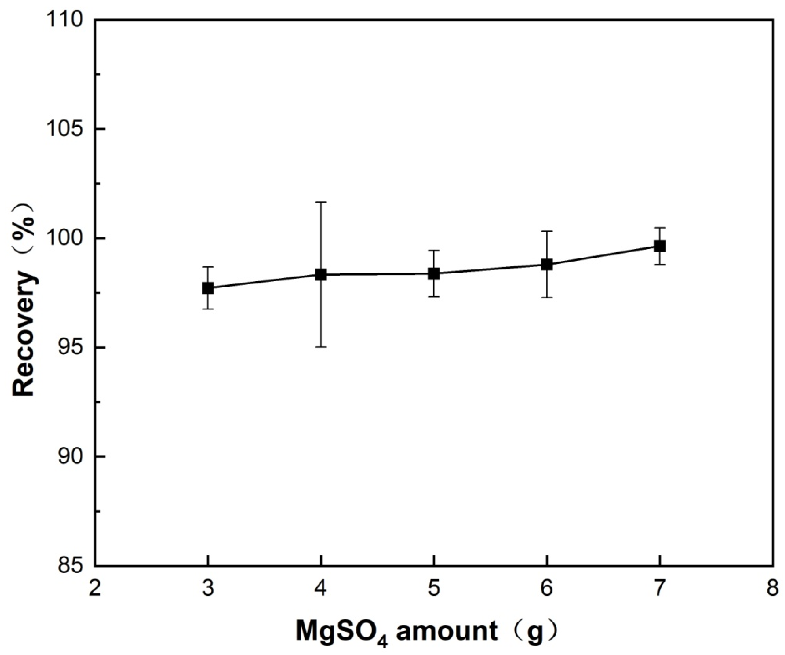 3.2.3. Optimization of Anhydrous MgSO4 Amount