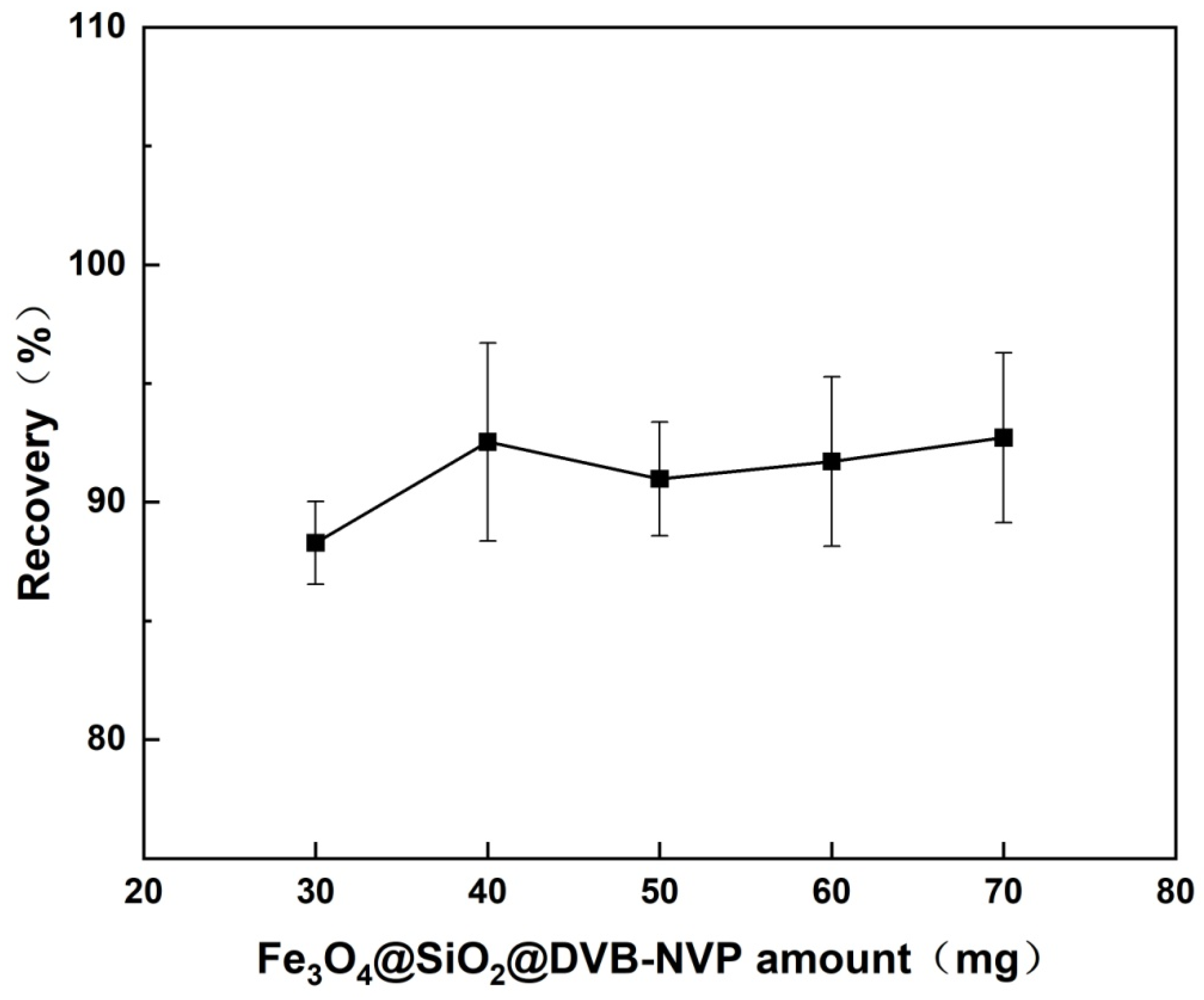3.2.4. Optimization of Fe3O4@SiO2@DVB-NVP Amount