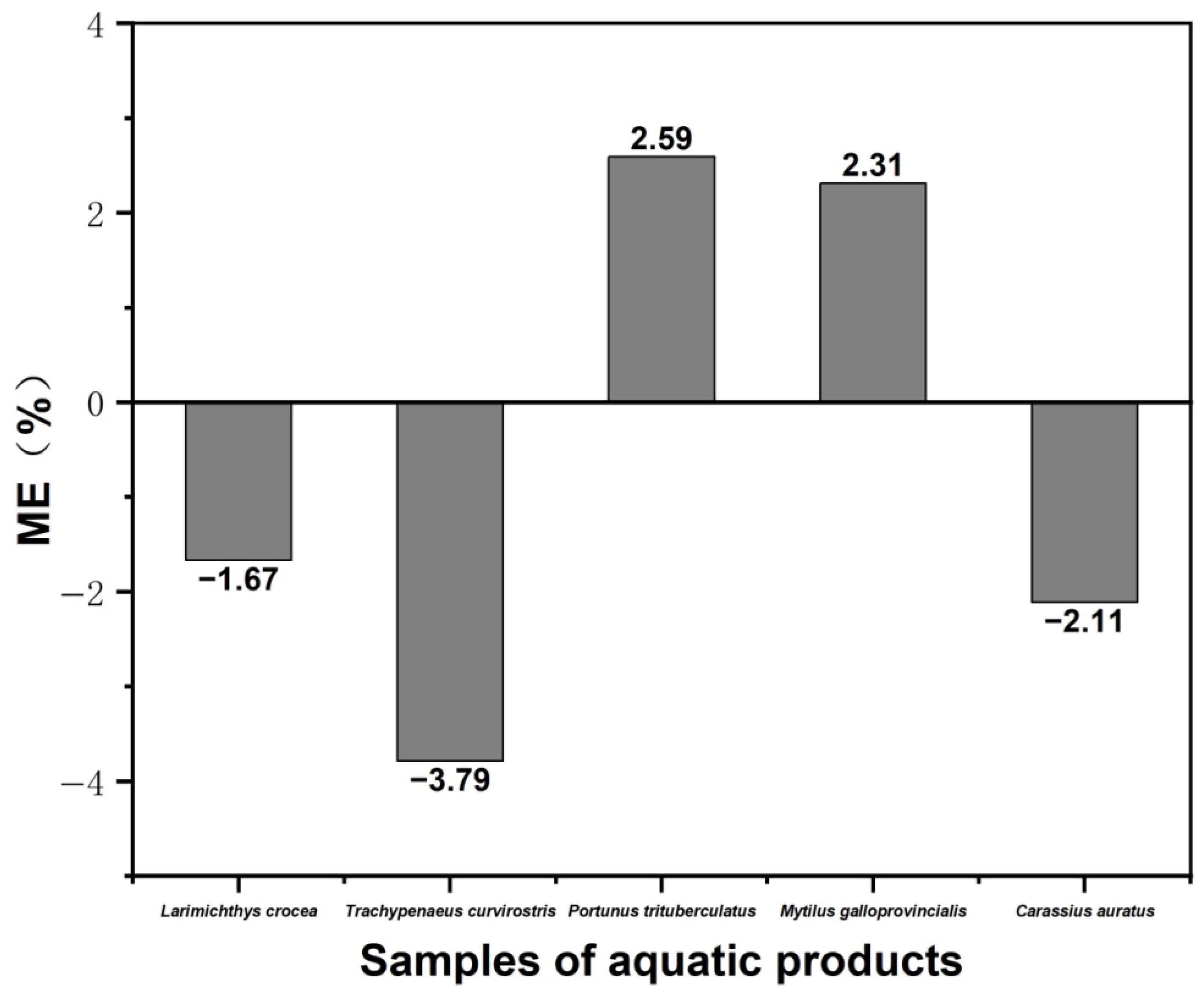 | UPLC-MS/MS | Larimichthys crocea, Trachypenaeus curvirostris, Carassius auratus, Portunus trituberculatus, Mytilus galloprovincialis | MSPE (Fe3O4@SiO2-DVB-NVP, C18) | Solvent-based calibration curve | 0.20 | 0.50 | 0.25–50 | 89.3–119.7 | 0.8–10.2 | Present method |