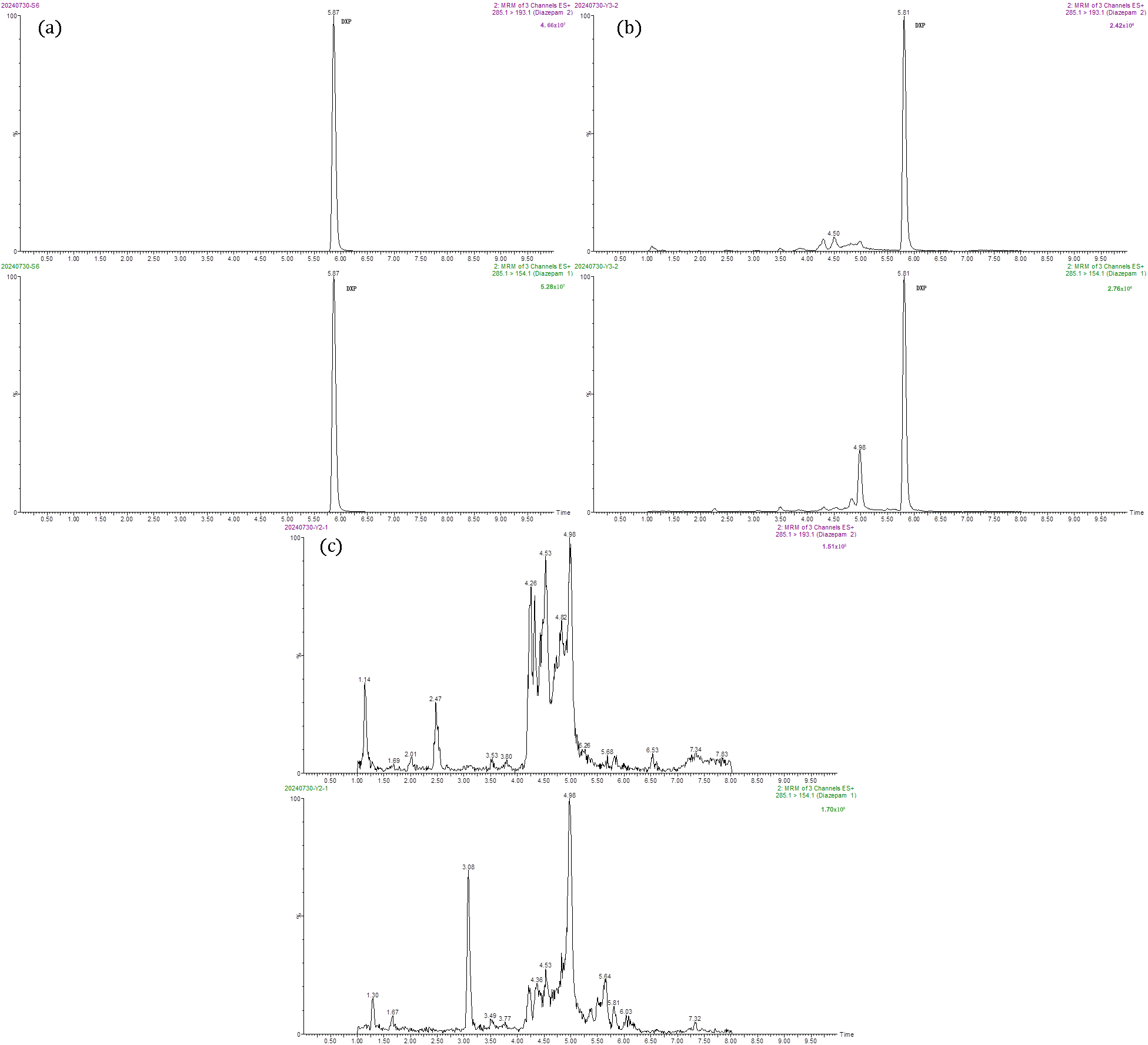 - Tok, K.C.; Ozkan-Kotiloglu, S.; Bozmaoglu, C.H.; Danisman, M.; Ozgur-Ilhan, I.; Kaya-Akyuzlu, D.; Suzen, H.S.; Gumustas, M. Development of a sample preparation and analysis method for therapeutic monitoring of diazepam and major metabolite in alcohol withdrawal syndrome treatment. J. Pharm. Biomed. Anal. 2025, 260, 116805. [Google Scholar] [CrossRef]