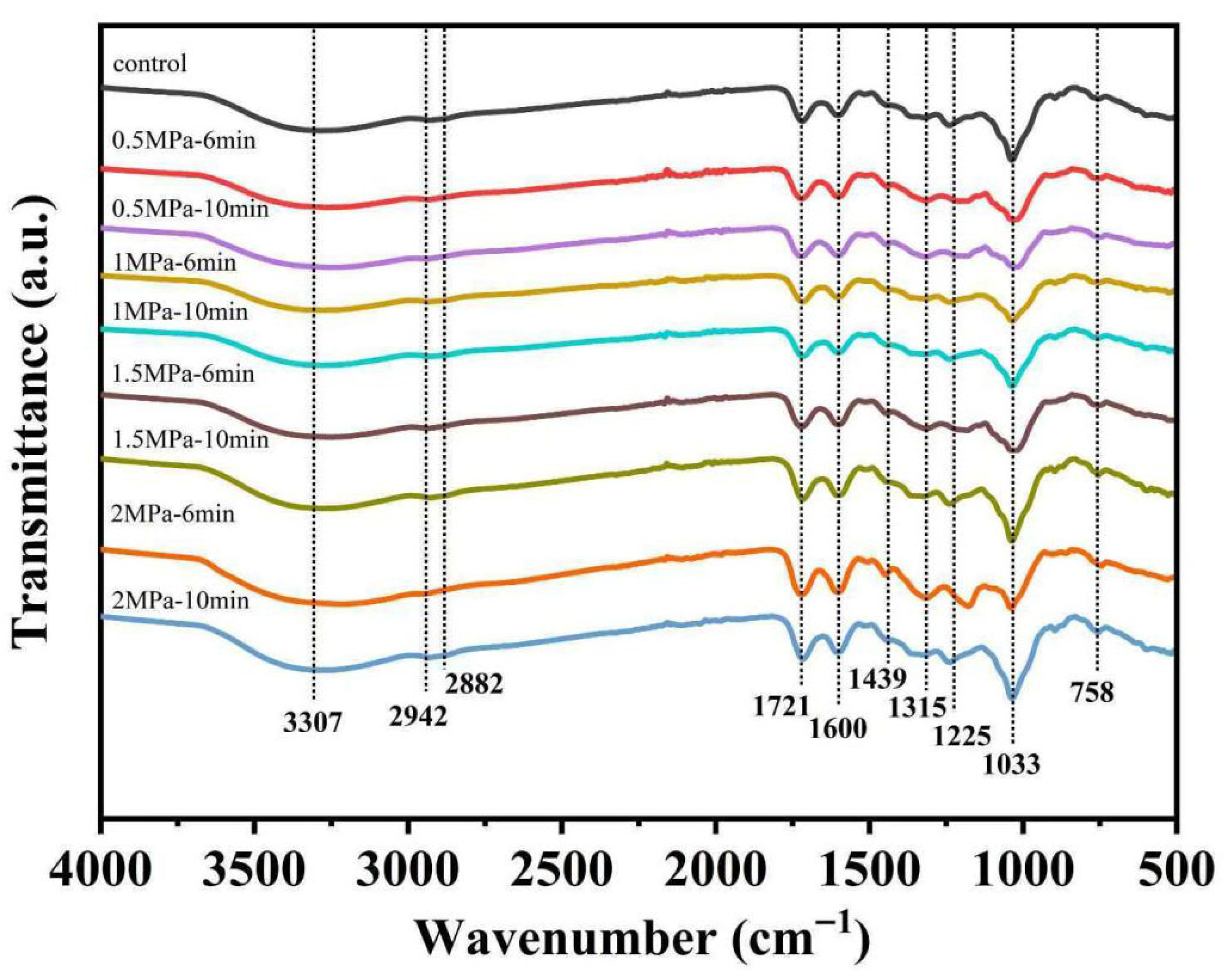 | 1.5 MPa-10 min | 472.94735 ± 7.25013 | 9.45111 ± 0.4858 | 1.31104 ± 0.08793 | 0.99817 |