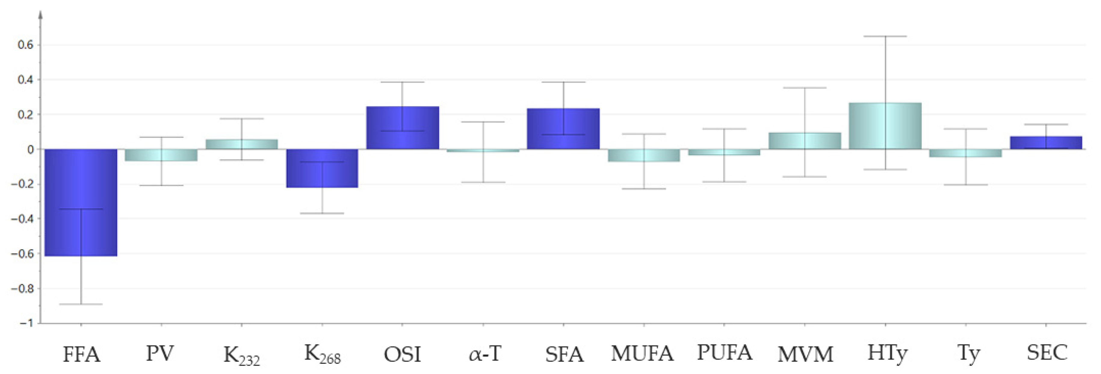 3.1.2. Relationship Between the Smoke Point and Other Quality and Compositional Parameters of Virgin Olive Oils