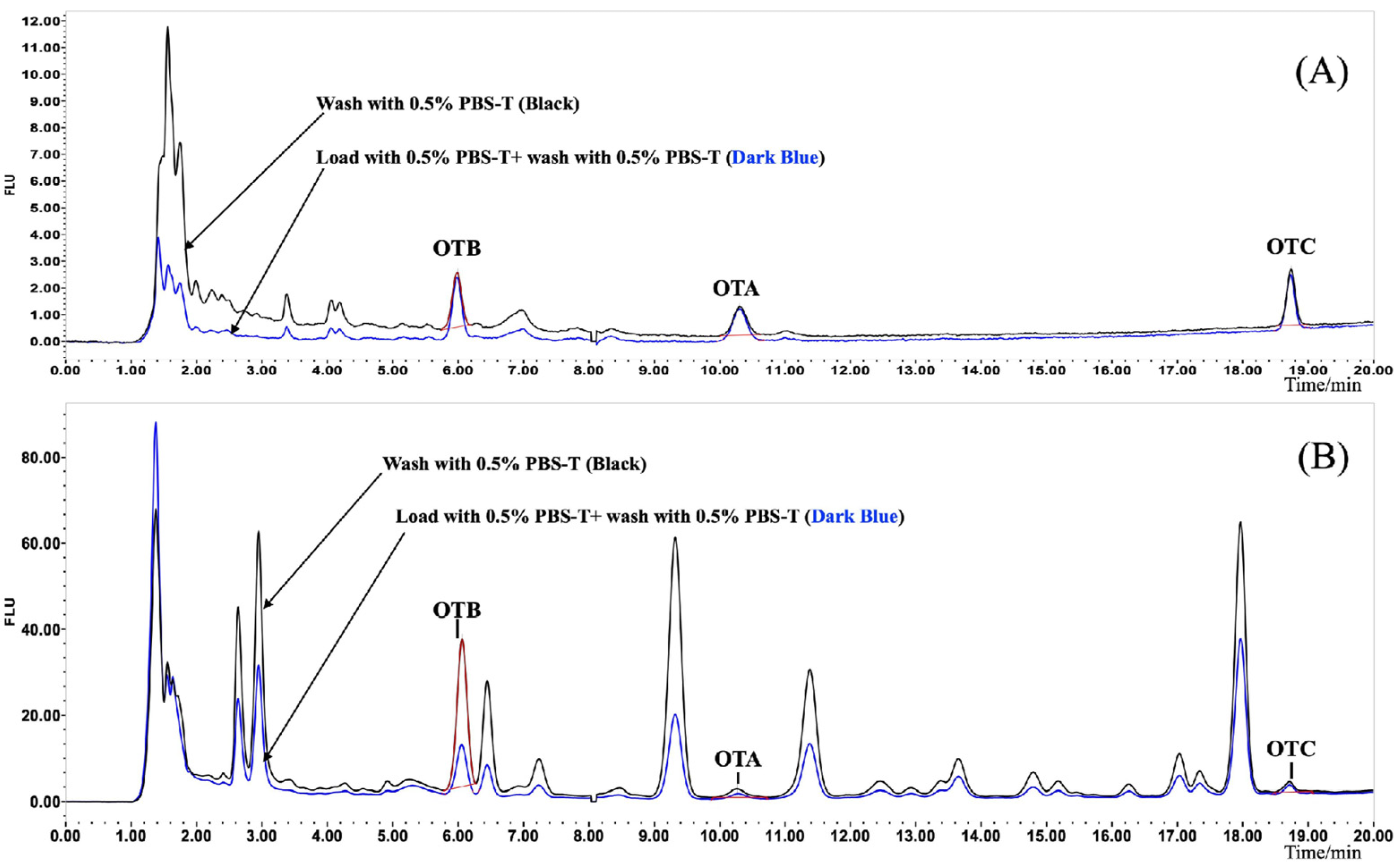 - Zhang, M.; Yan, L.; Huang, Q.; Bu, T.; Yu, S.; Zhao, X.; Wang, J.; Zhang, D. Highly sensitive simultaneous detection of major ochratoxins by an immunochromatographic assay. Food Control 2018, 84, 215. [Google Scholar] [CrossRef]