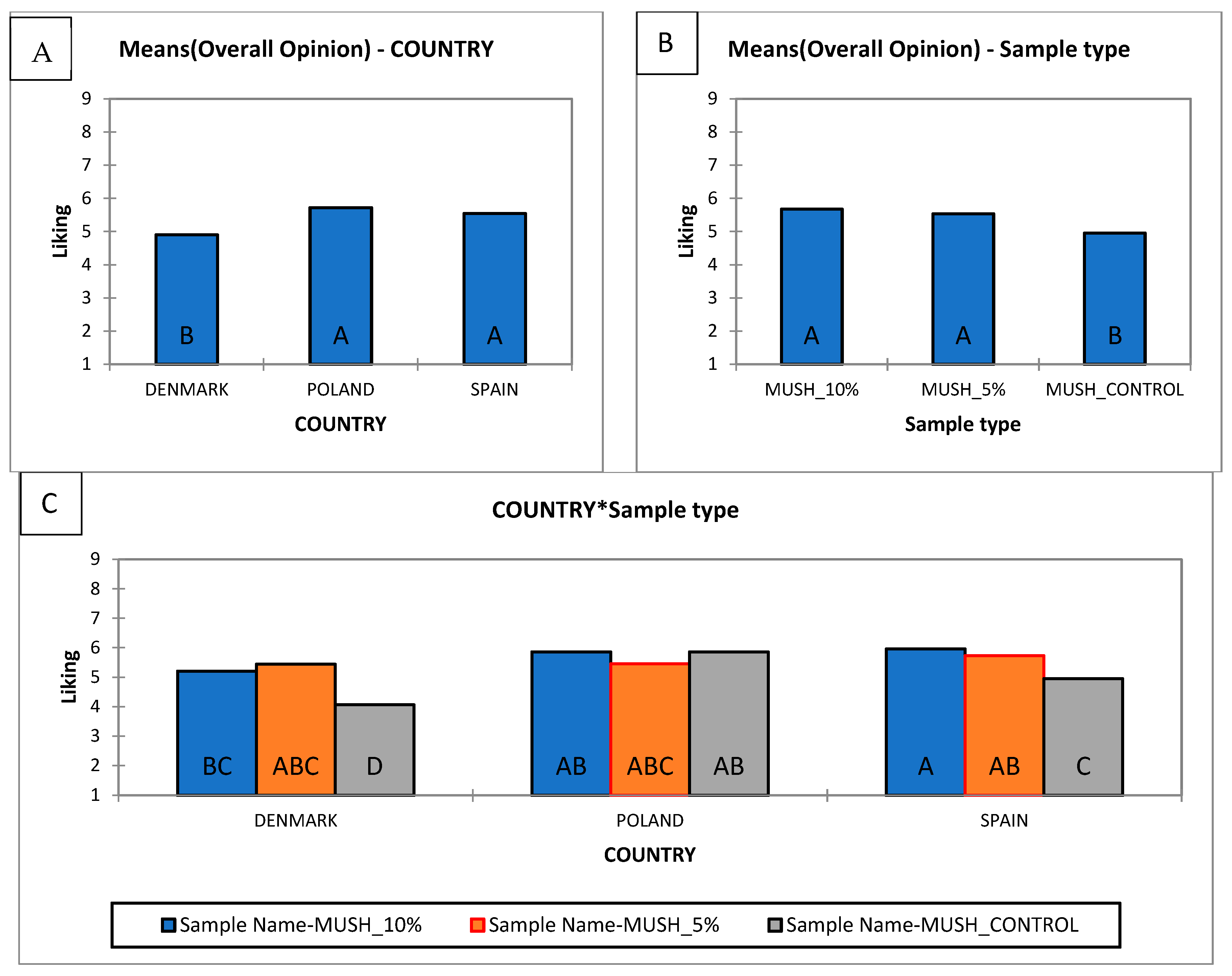 3.4. Correlation Between Liking of the Snacks and All Consumers and Products Variables Run per Country
