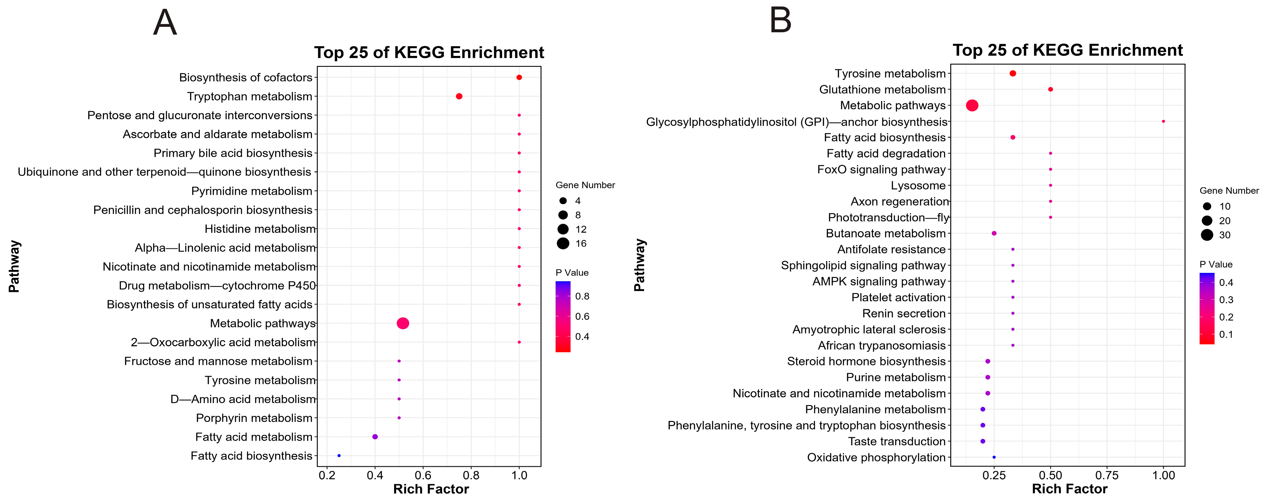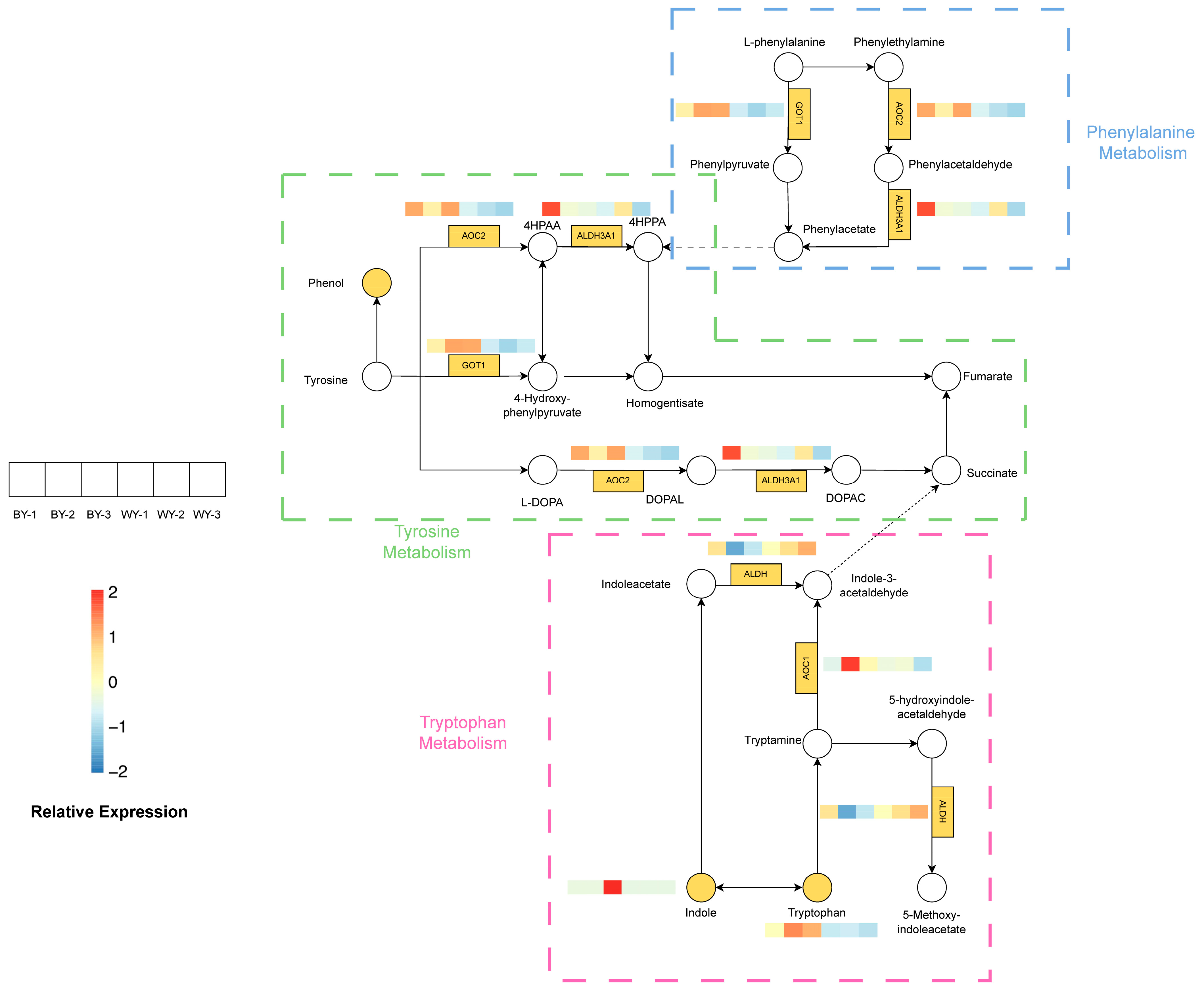 3.6. Analysis of the Tyrosine, Phenylalanine, and Tryptophan Metabolism Pathways