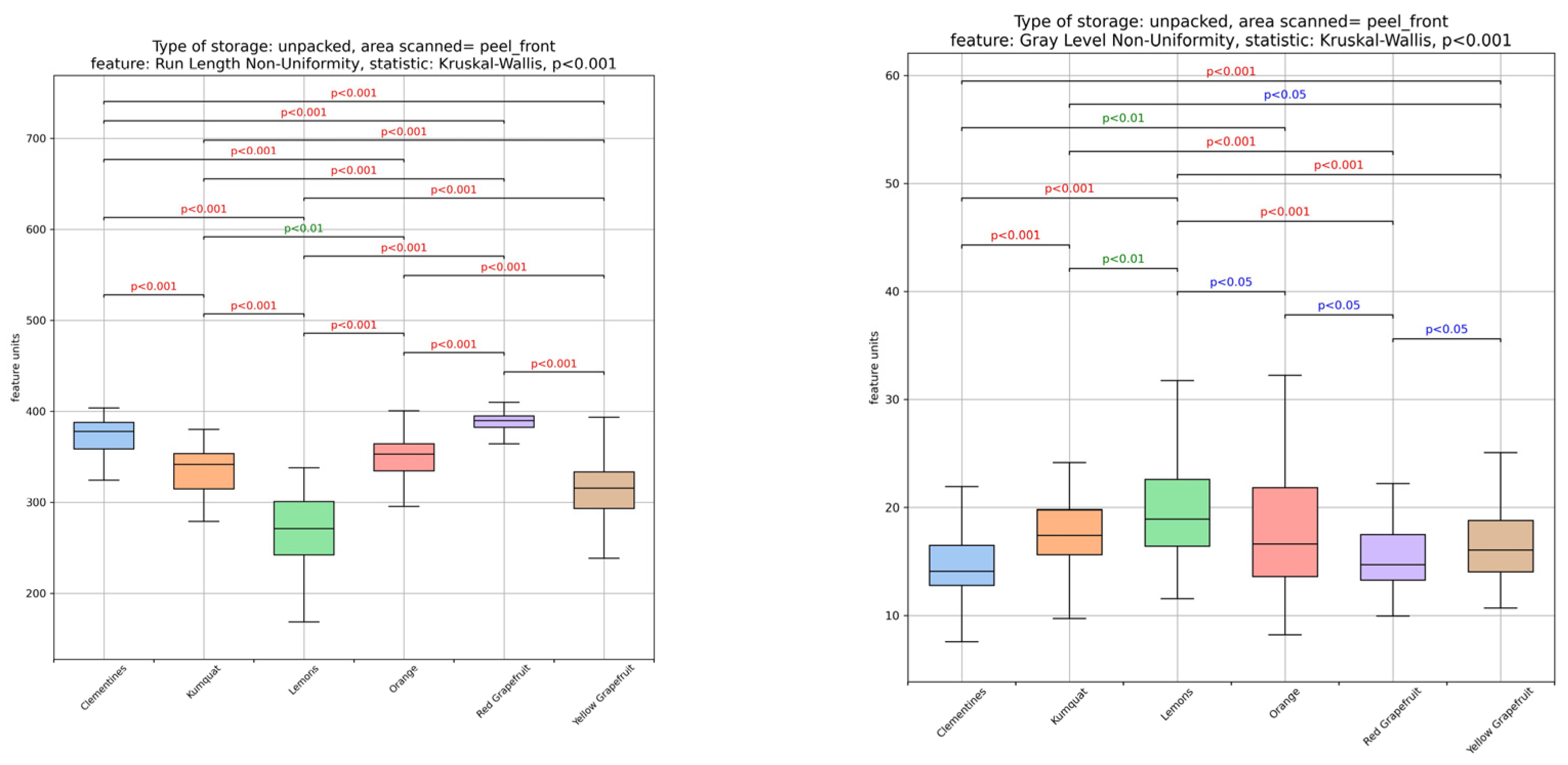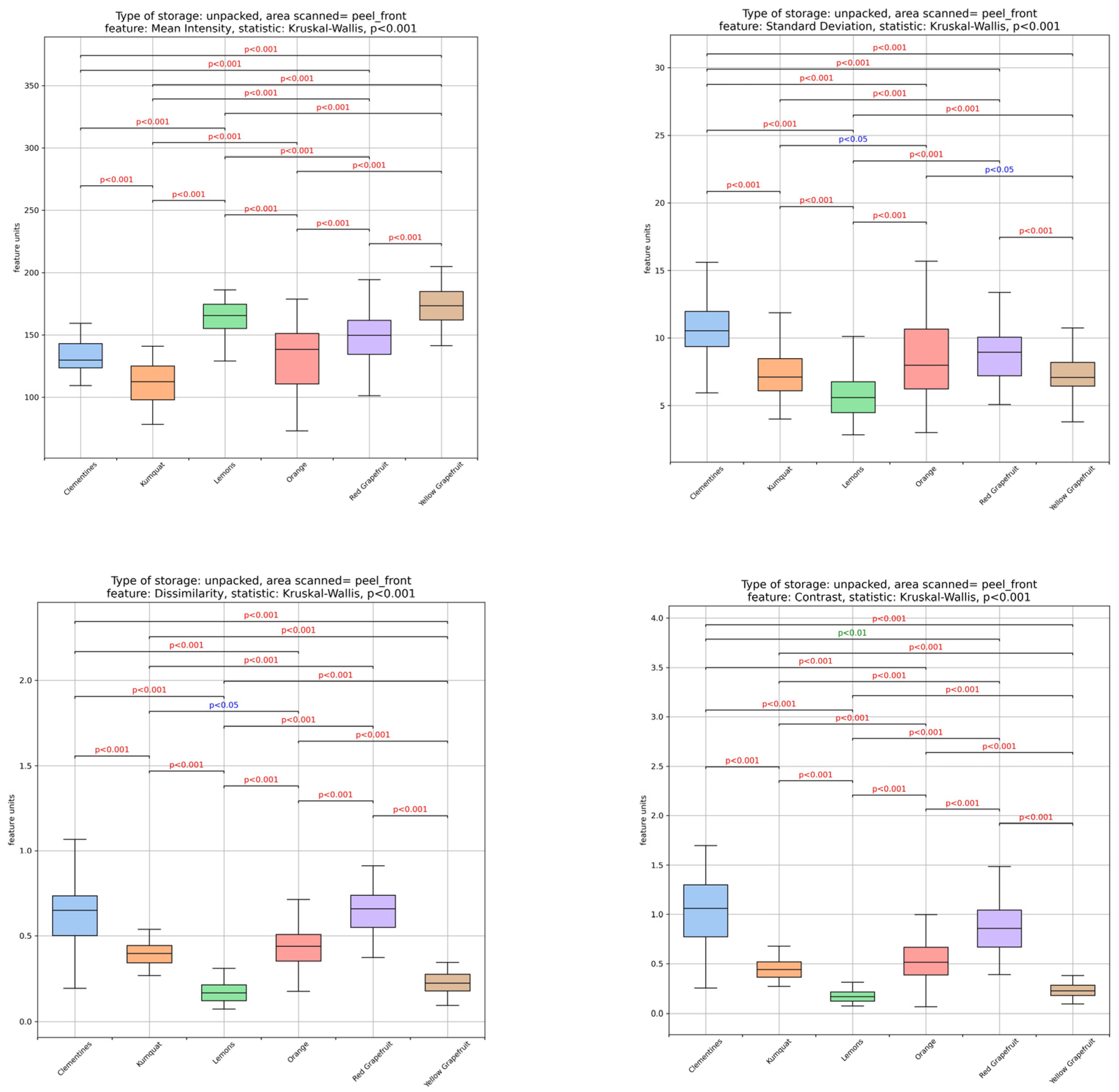 3.1. Textural Image Analysis of Citrus Fruit Peels