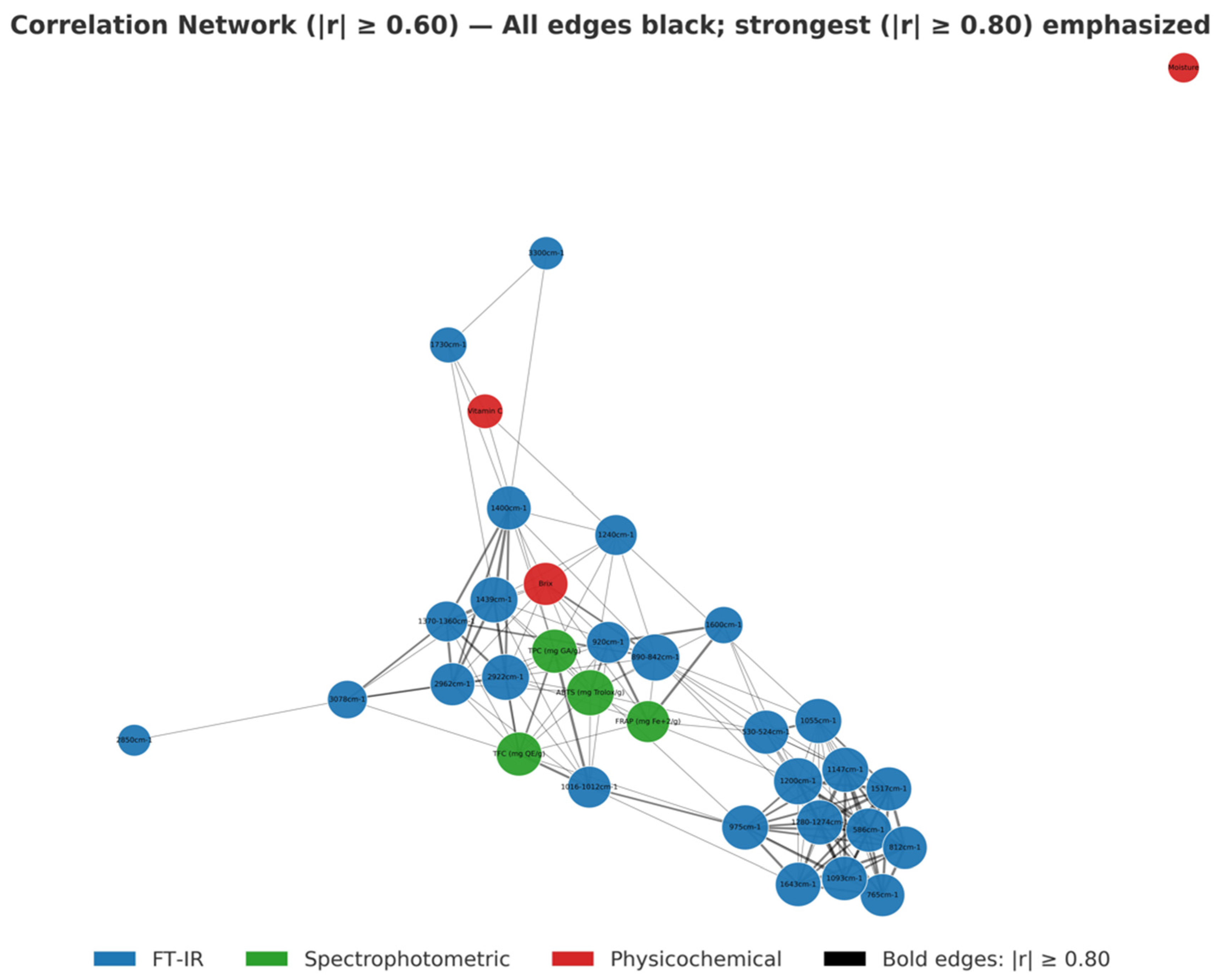 | 1240 | ν (C-O) | Polyphenols, carbohydrates |