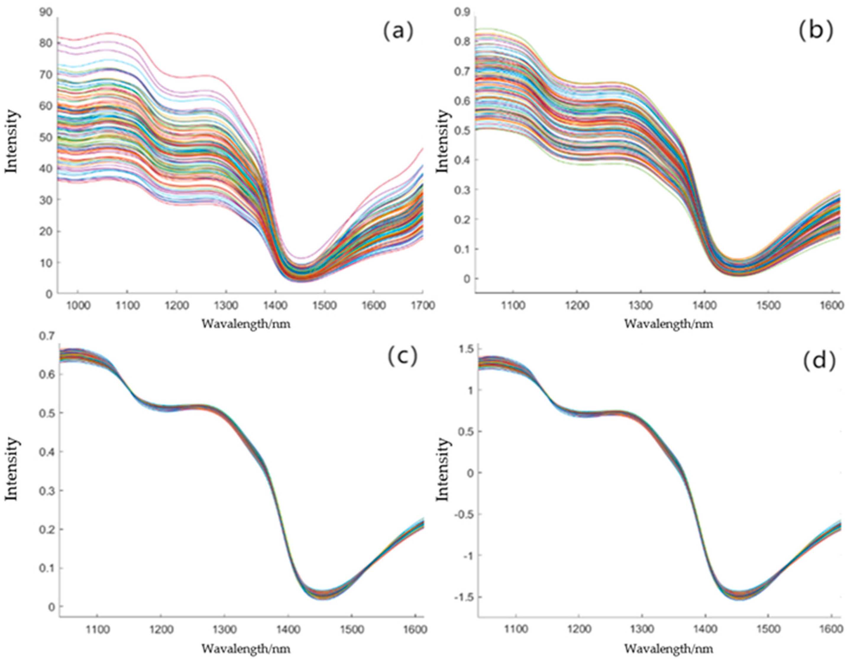 - Bi, Y.; Yuan, K.; Xiao, W.; Wu, J.; Shi, C.; Xia, J.; Chu, G.; Zhang, G.; Zhou, G. A local pre-processing method for near-infrared spectra, combined with spectral segmentation and standard normal variate transformation. Anal. Chim. Acta 2016, 909, 30–40. [Google Scholar] [CrossRef]