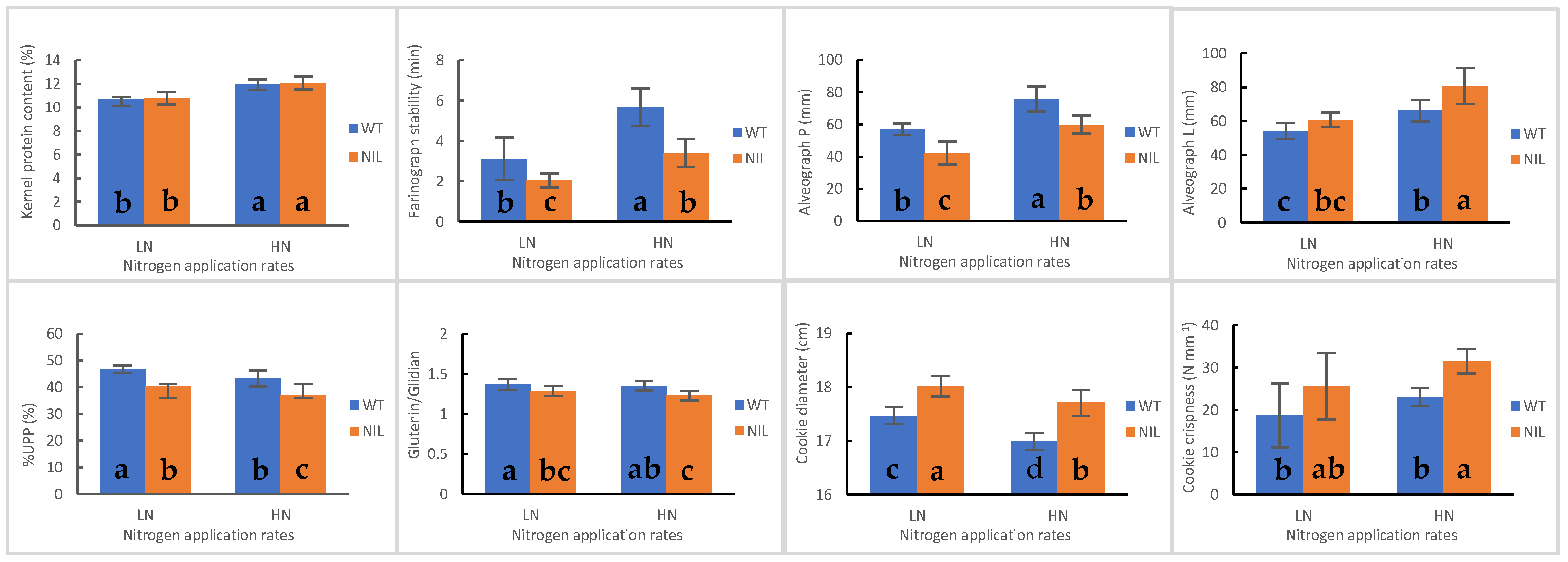 3.5. Grain Yield and Wheat Quality Traits in WT and NIL