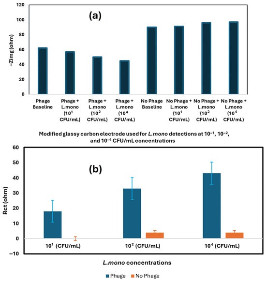 | Nanomaterials-Enhanced Electrochemical Biosensor | L. mono | Chicken broth | SPE | q-CNT, P100 Phage | 10 CFU/mL | [82] |