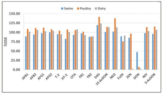 - Nualkaw, K.; Poapolathep, S.; Zhang, Z.; Zhang, Q.; Giorgi, M.; Li, P.; Logrieco, A.F.; Poapolathep, A. Simultaneous Determination of Multiple Mycotoxins in Swine, Poultry and Dairy Feeds Using Ultra High Performance Liquid Chromatography-Tandem Mass Spectrometry. Toxins 2020, 12, 253. [Google Scholar] [CrossRef]