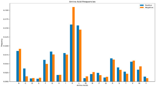 Comparative analysis of amino acid composition revealed distinct distributional patterns between hemolytic and non-hemolytic peptides (Figure 2). Lysine (K) occurred at a significantly higher frequency in non-hemolytic samples, whereas Leucine (L) was notably more abundant in hemolytic peptides. The remaining amino acids exhibited relatively balanced distributions across both groups, with less pronounced differences than those observed for K and L.