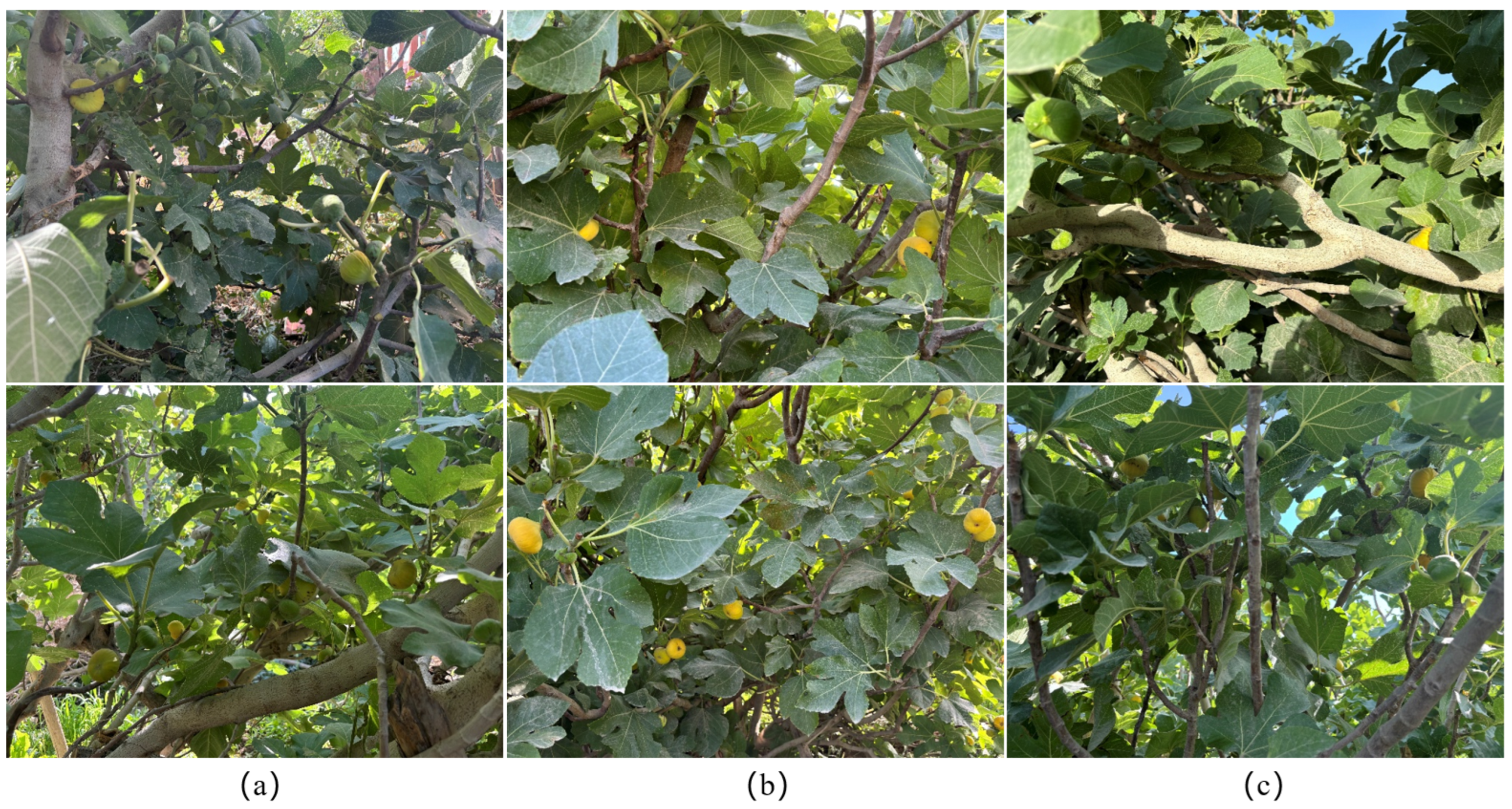 Table 1. These locations are managed orchard environments, representing typical commercial fig production settings with controlled cultivation practices. Detecting figs in such orchards is of practical significance, as it enables accurate quantification of fruit load at the individual tree or orchard level, providing foundational data for yield prediction.