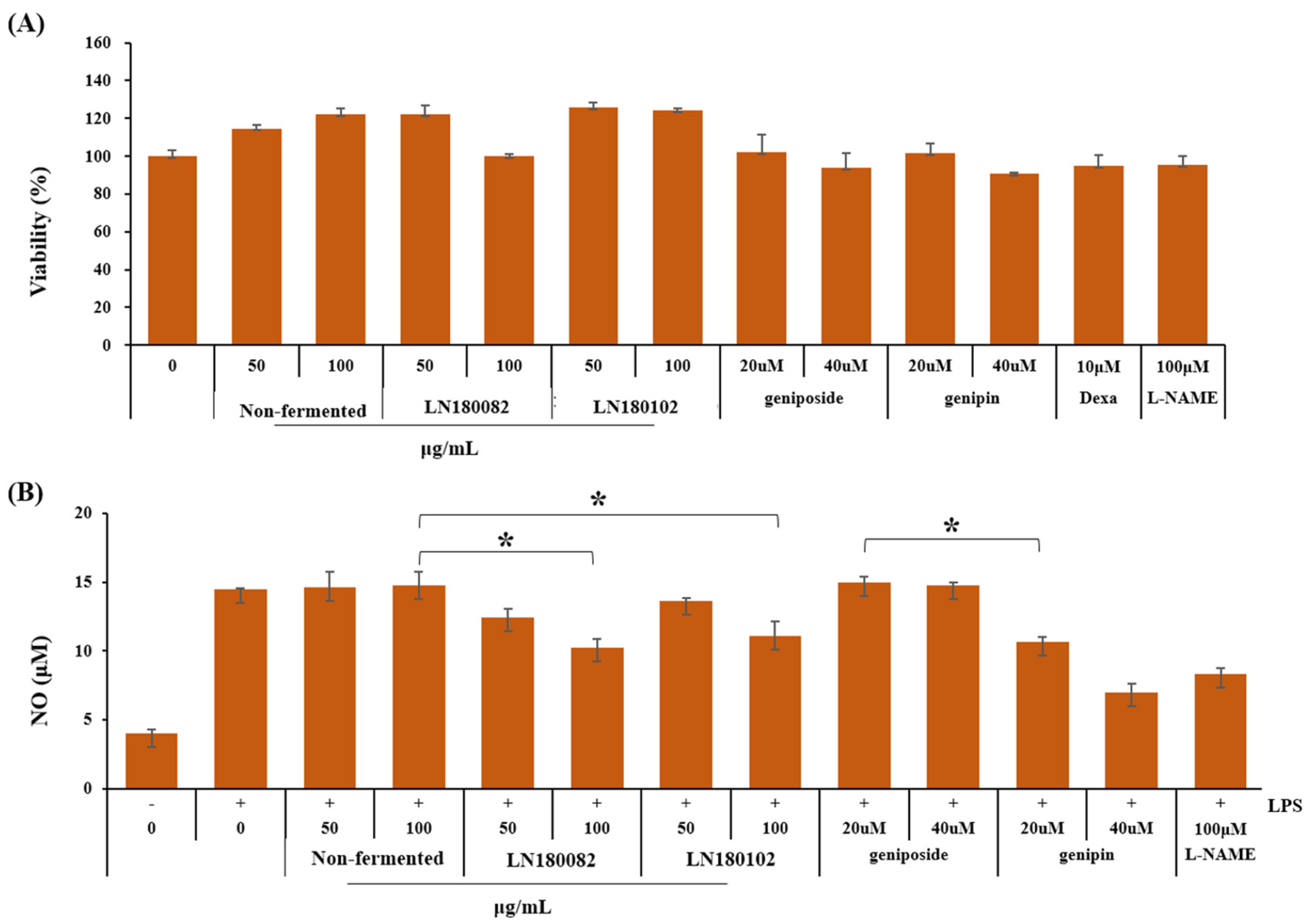 Chicago/Turabian StyleJin, Chun-Zhi, Long Jin, Ye Zhuo, Ting Li, Huimin Liu, Kee-Sun Shin, and Le Kang. 2025. "Bioconversion of Geniposide from Gardenia jasminoides via Levilactobacillus Enhancing Anti-Inflammatory Activity" Foods 14, no. 23: 4156. https://doi.org/10.3390/foods14234156