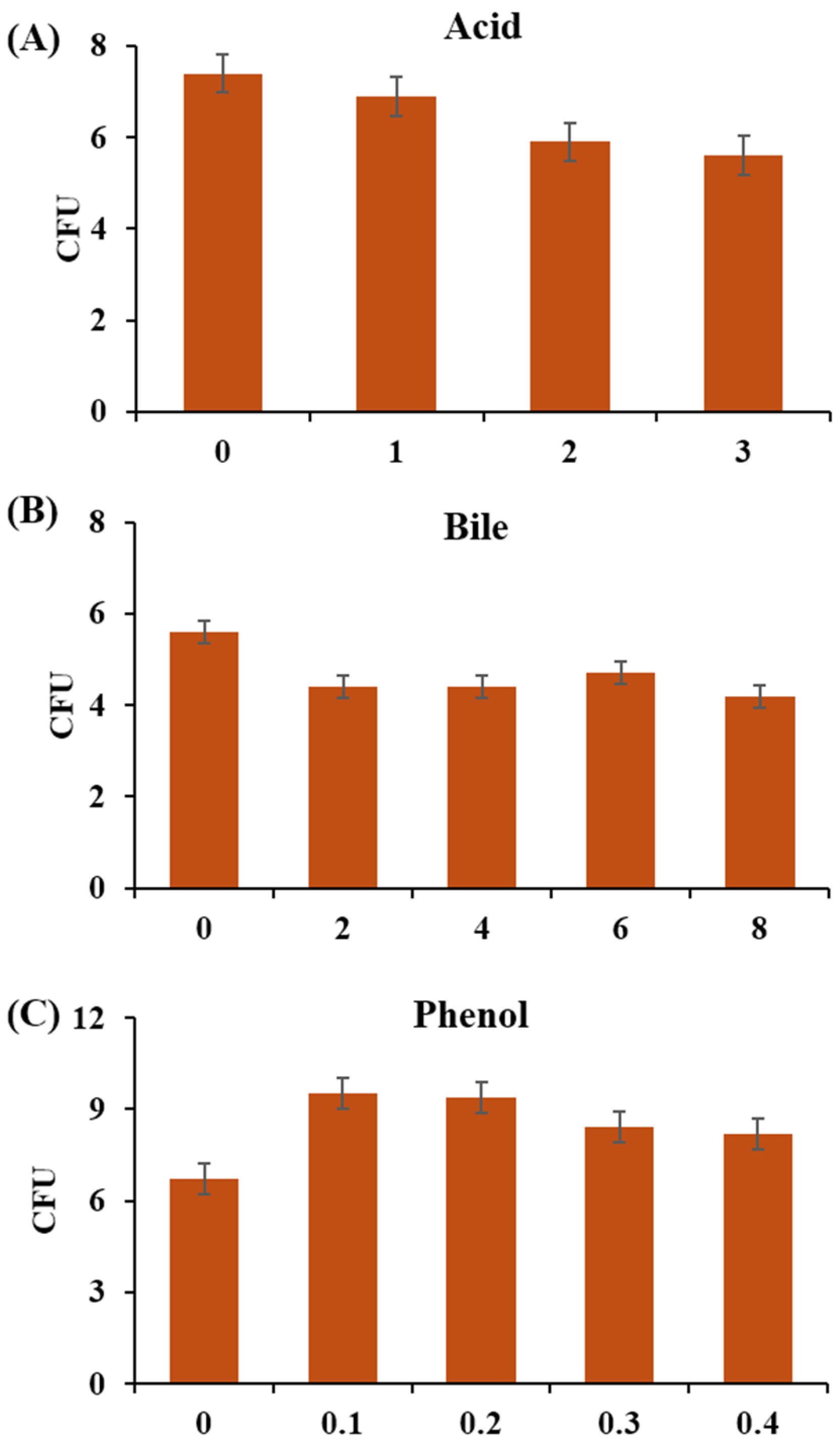 2.5. Probiotic Characteristics of Lactic Acid Bacteria
