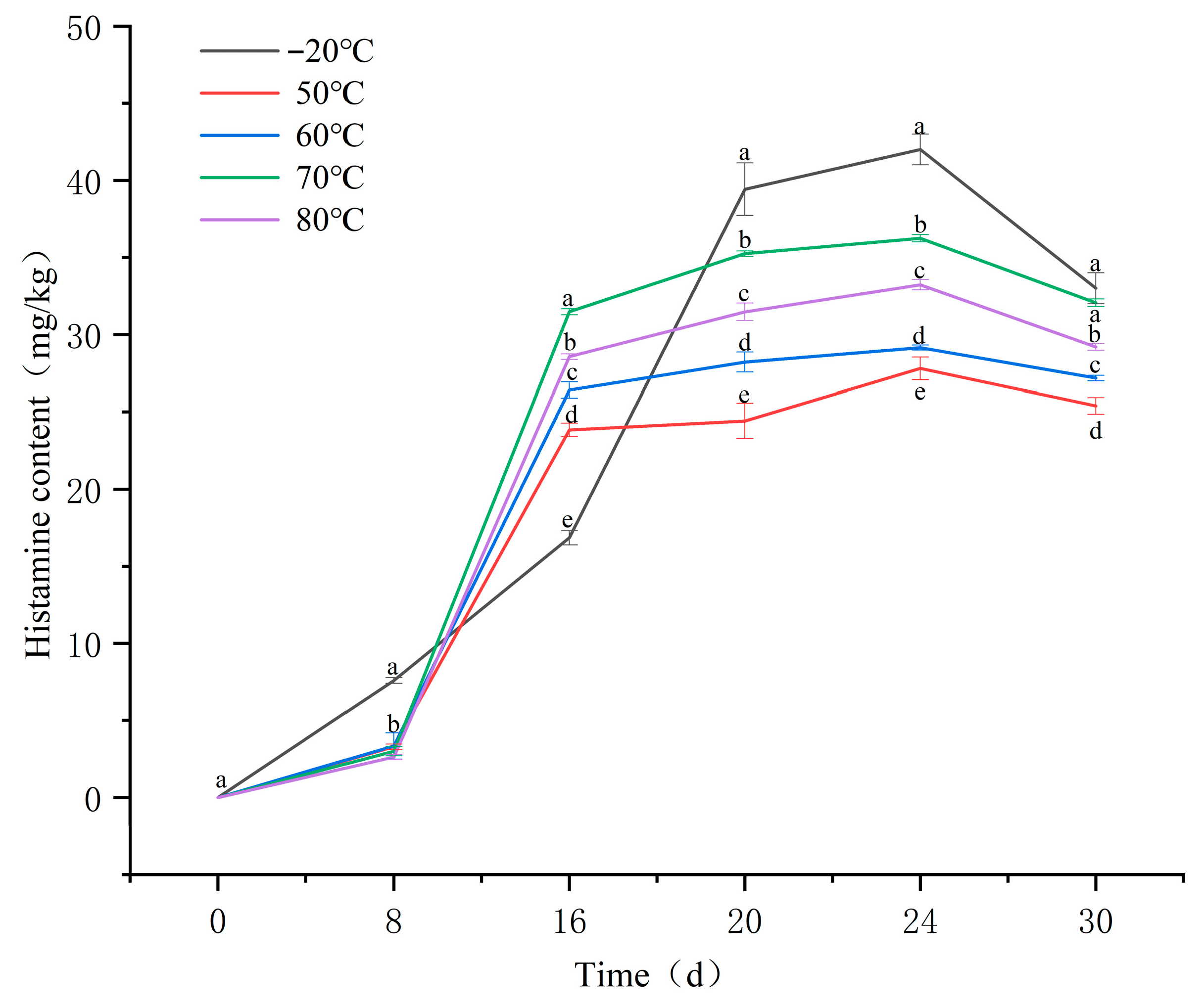 2.4. Determination of Histamine Content and Selection of Groups with Significant Differences