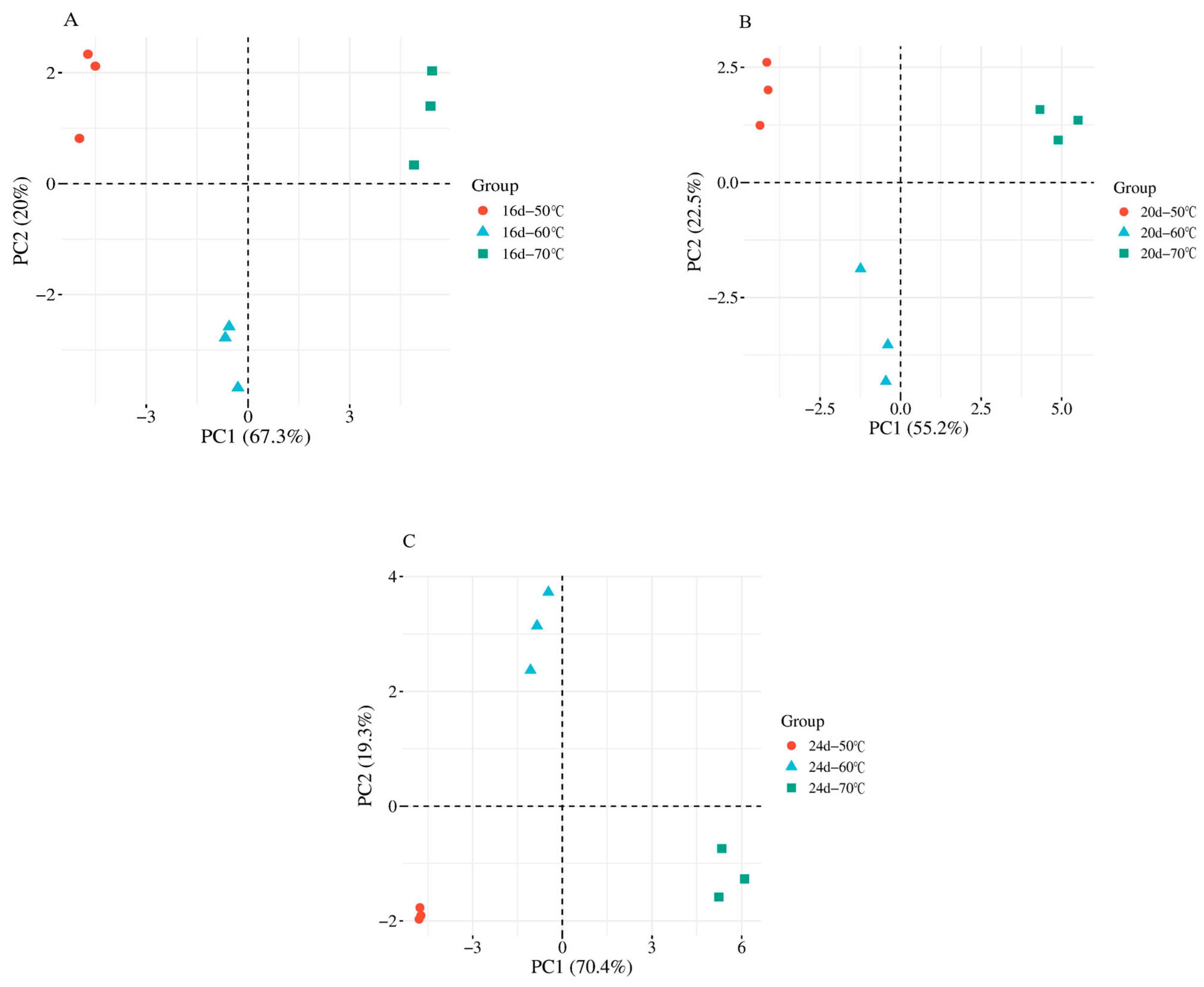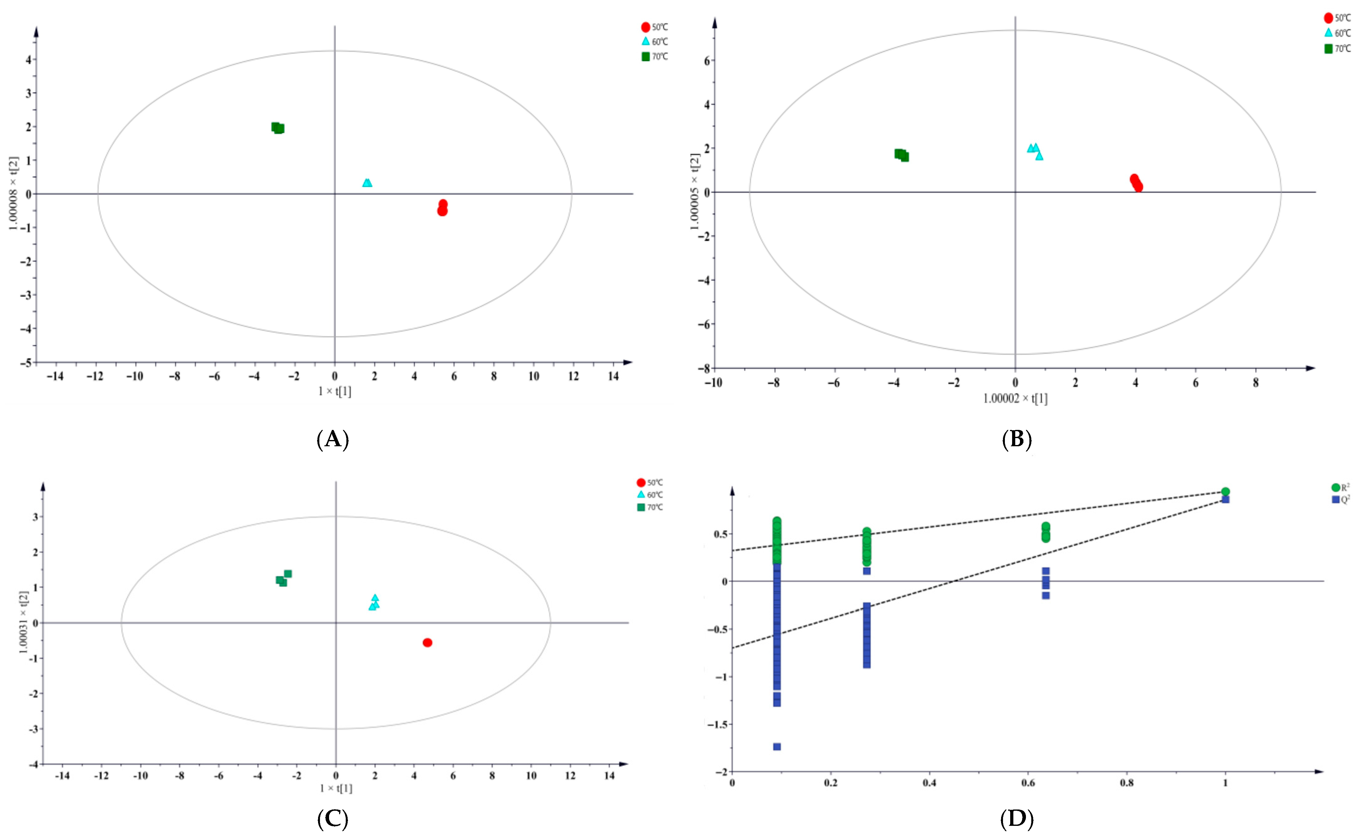 3.3.3. Orthogonal Partial Least Squares-Discriminant Analysis (OPLS-DA)
