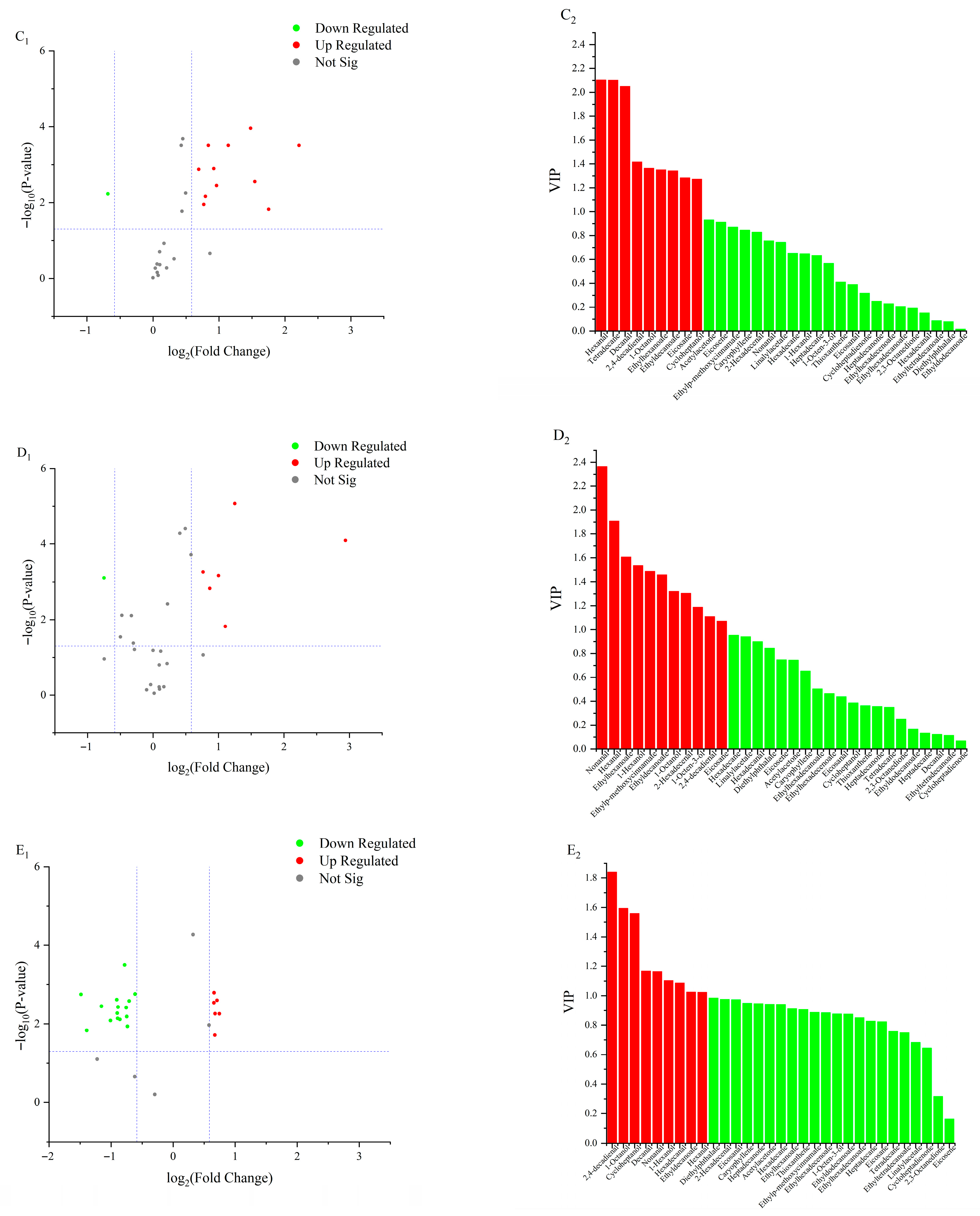 | Aldehydes | Nonanal | 0.43 ± 0.02 d | 1.47 ± 0.14 c | 3.49 ± 0.12 a | 0.14 ± 0.05 d | 0.46 ± 0.07 d | 3.46 ± 0.62 ab | 0.7 ± 0.08 d | 1.15 ± 0.32 c | 3.65 ± 0.23 ab |