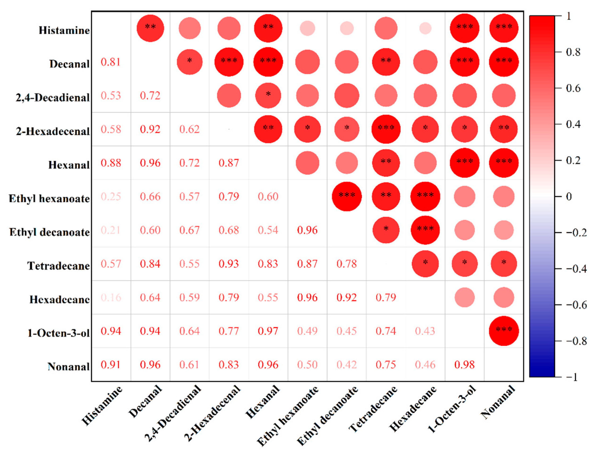 3.4. Correlation Analysis Between Differential Lipid Oxidation Products and Histamine Content