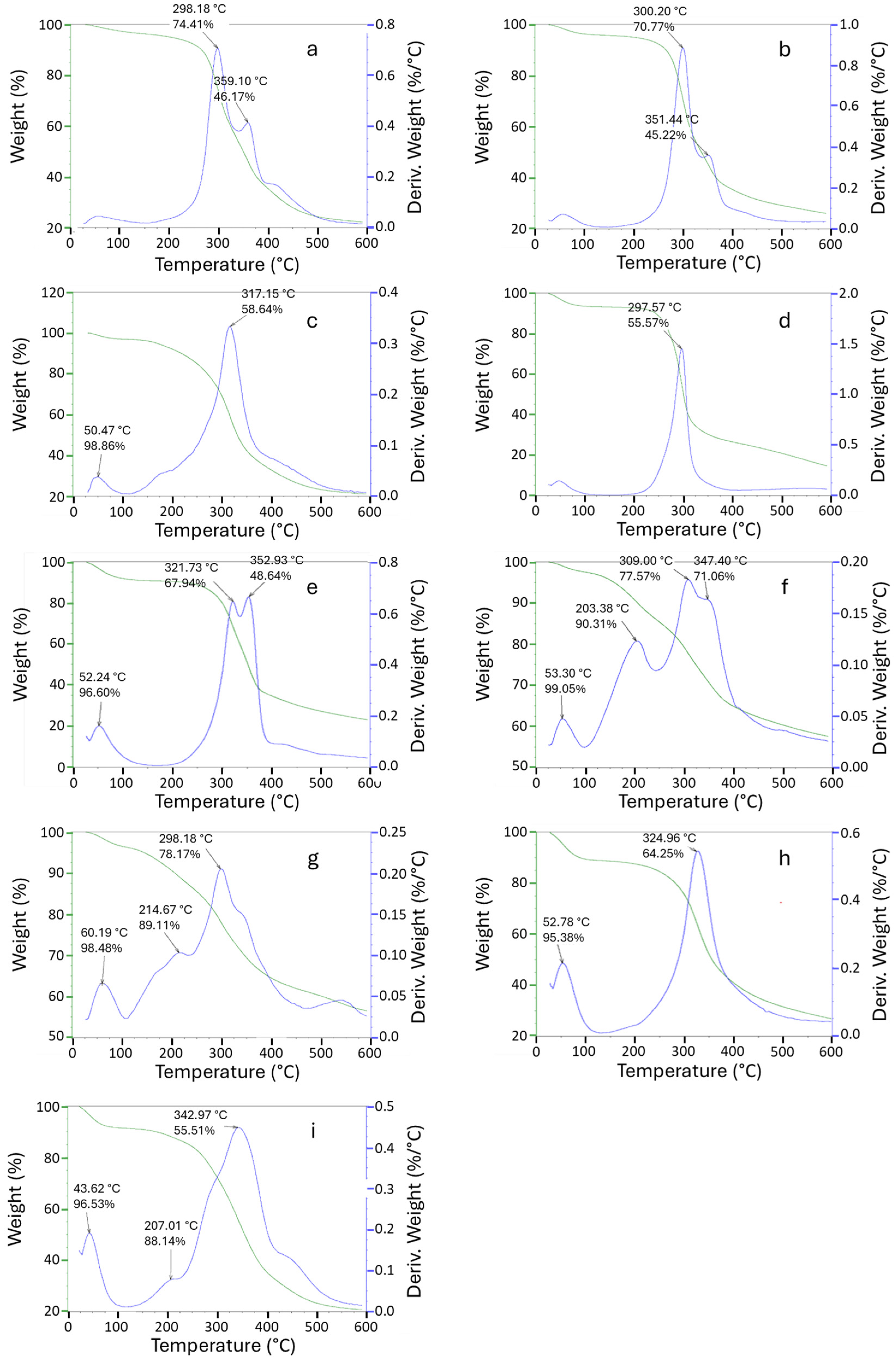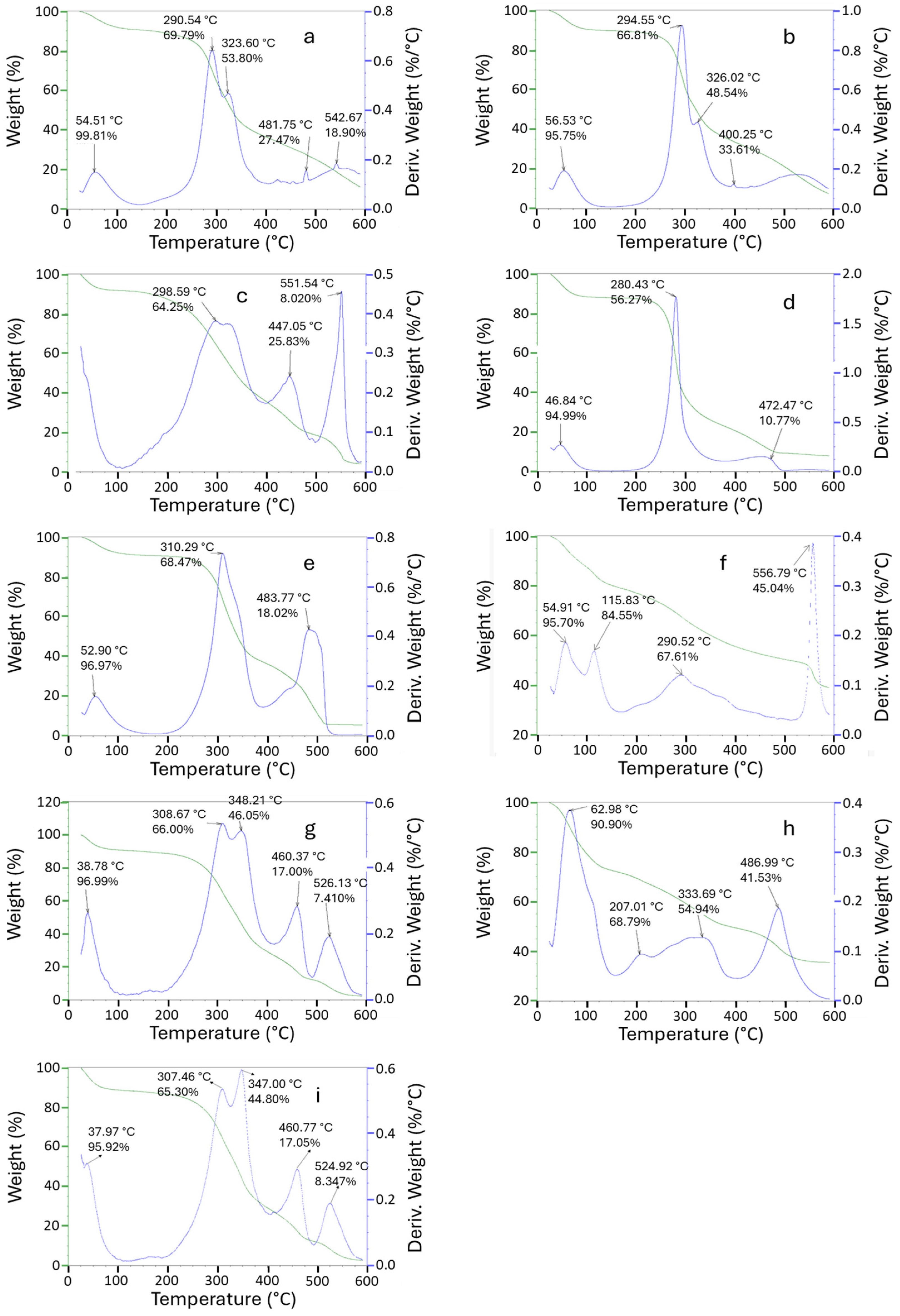 3.1. Thermogravimetric (TGA) and Derivative Thermogravimetric (DTG) Analysis