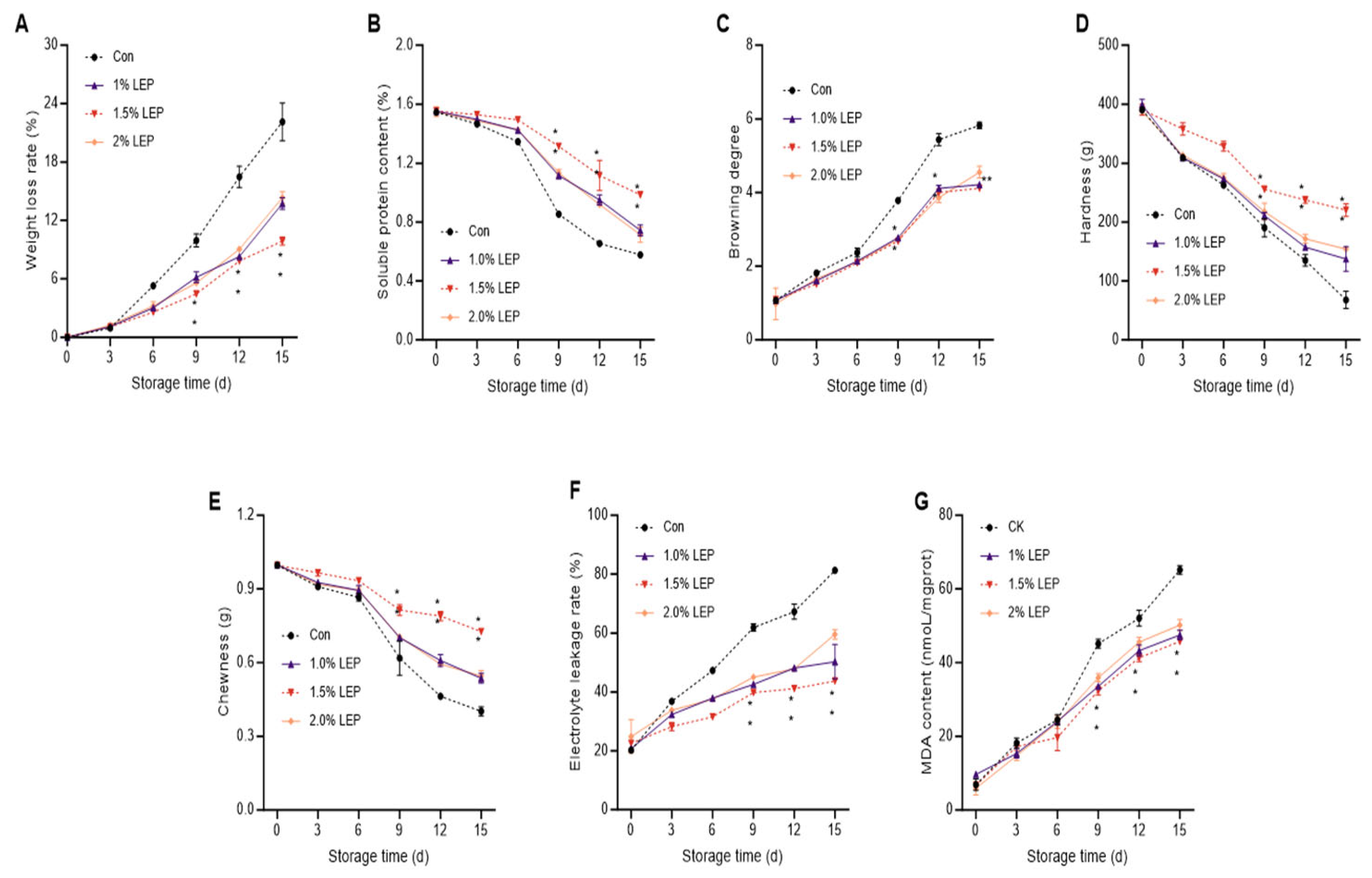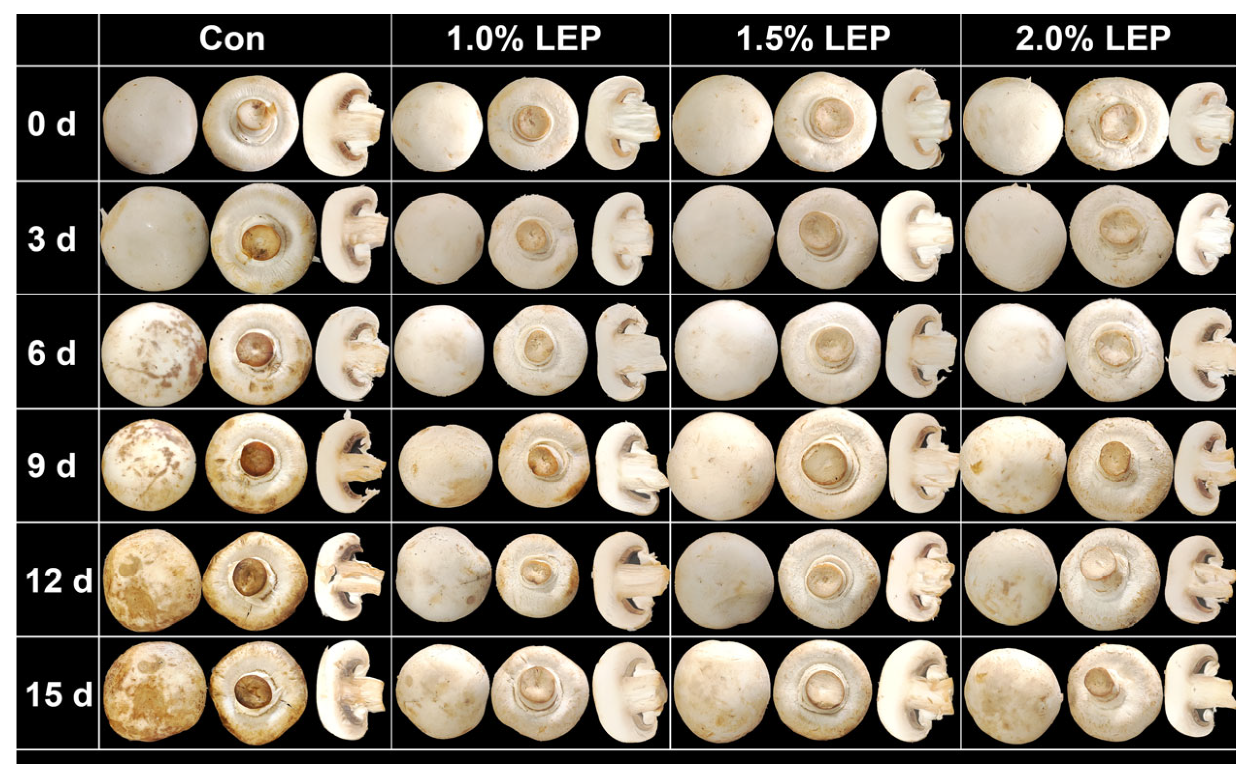 3.1. Quality Characteristics of Agaricus bisporus with the LEP Coating
