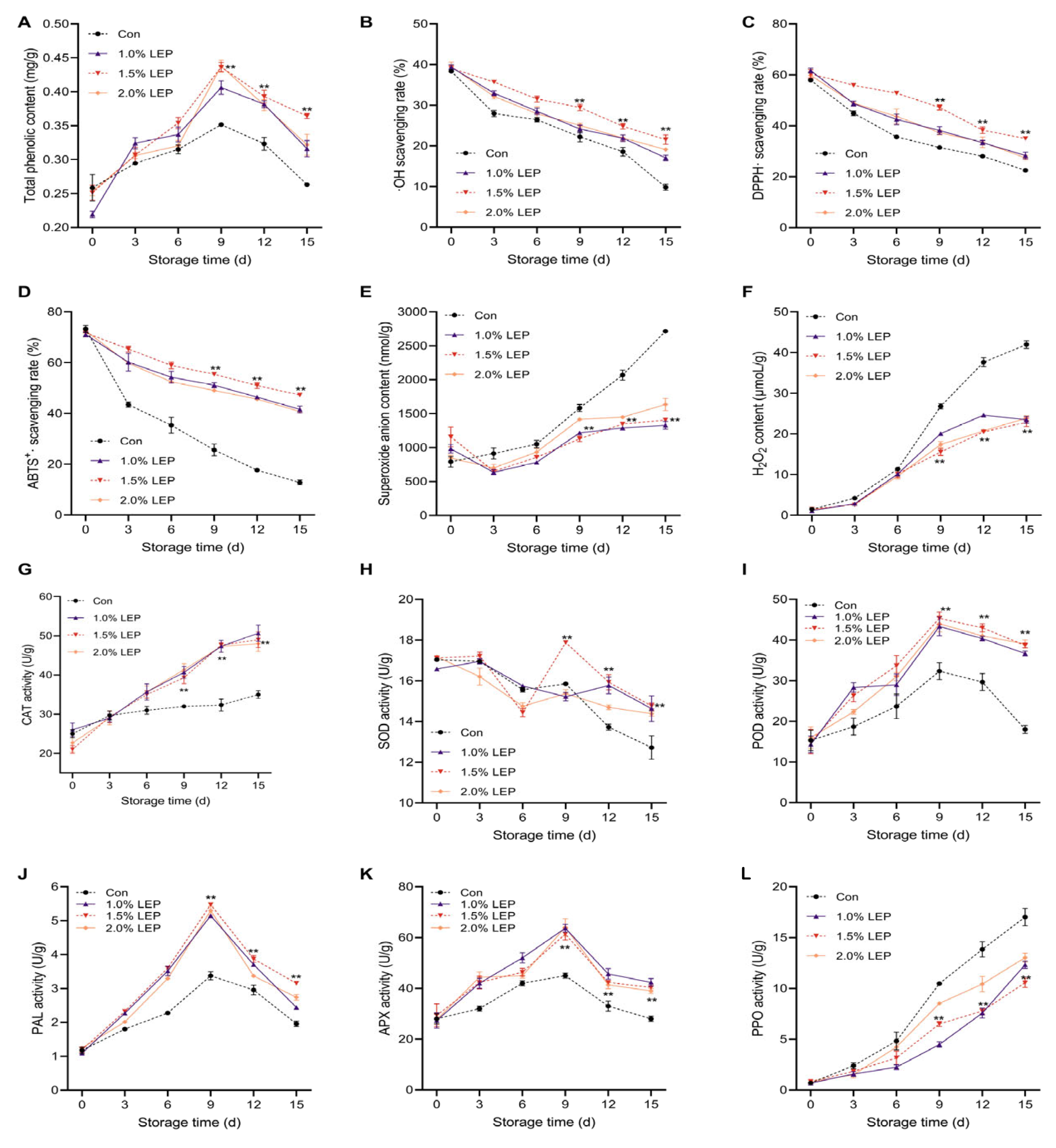 3.3. Characterization of Antioxidant Activity and Resistance with the LEP Coating