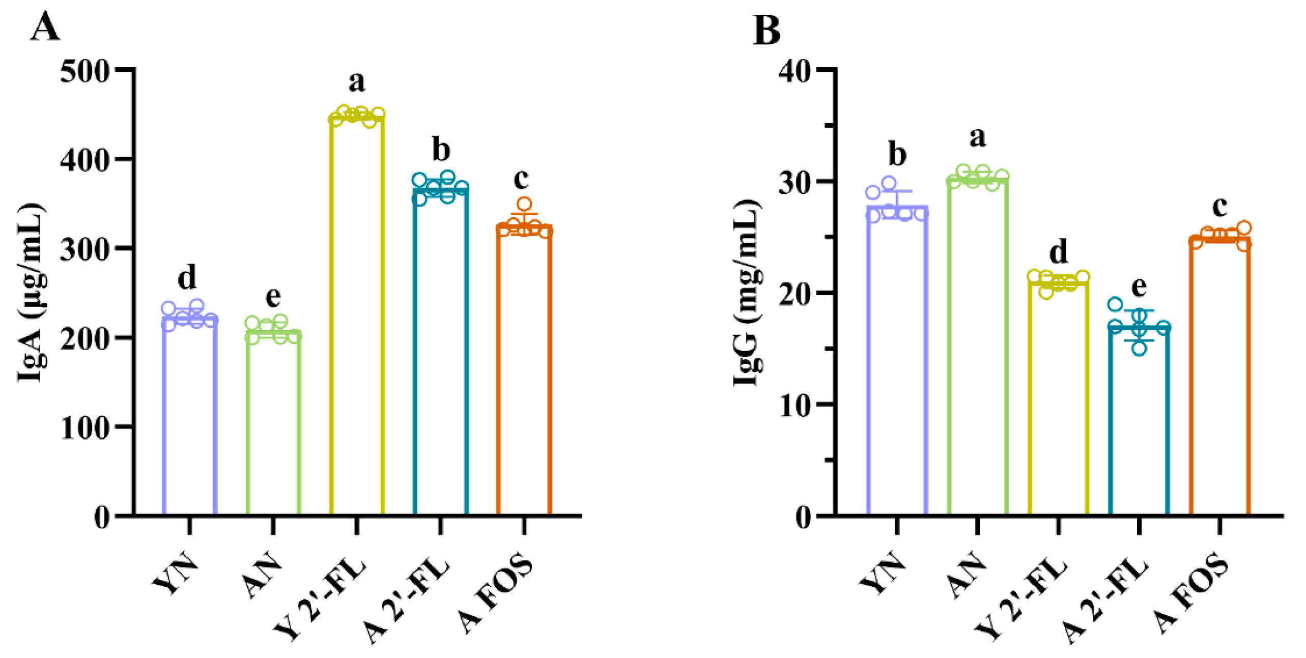 3.4. Effects of 2′-FL on Antibody Levels in Mice of Each Group