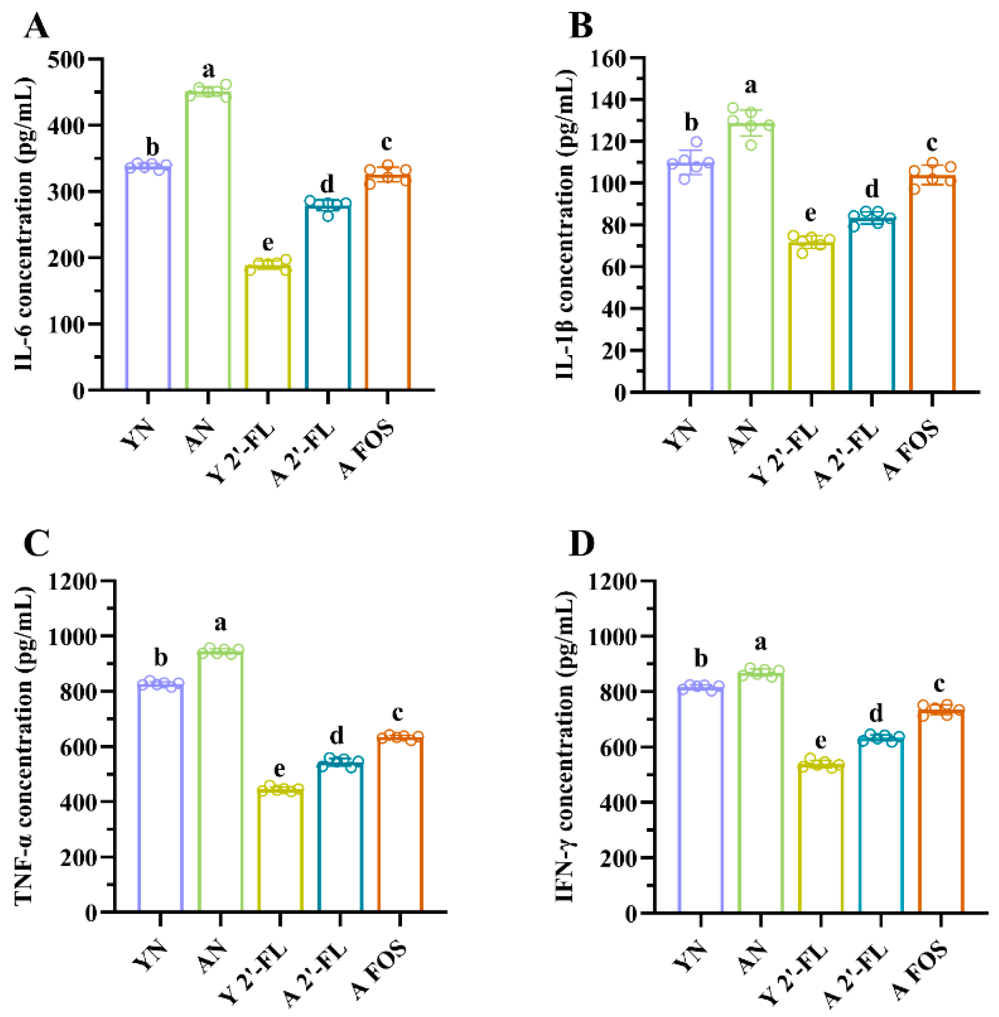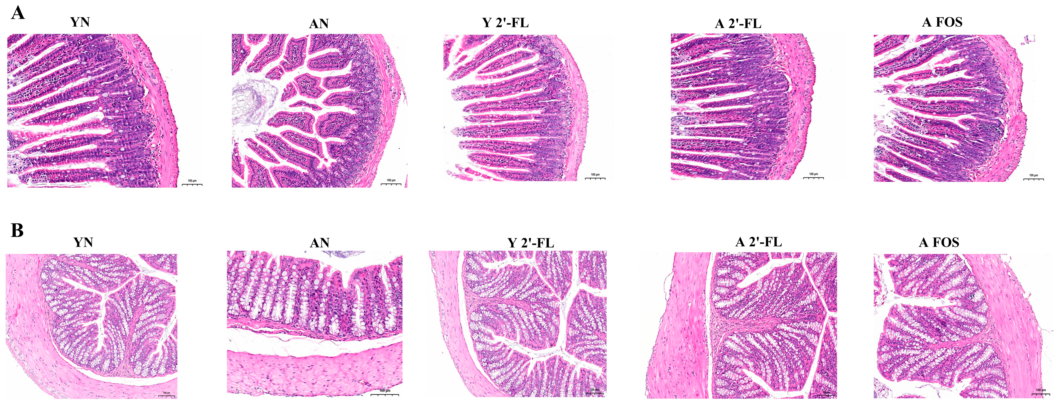 3.5. Effects of 2′-FL on Cytokine Levels in Mice of Each Group