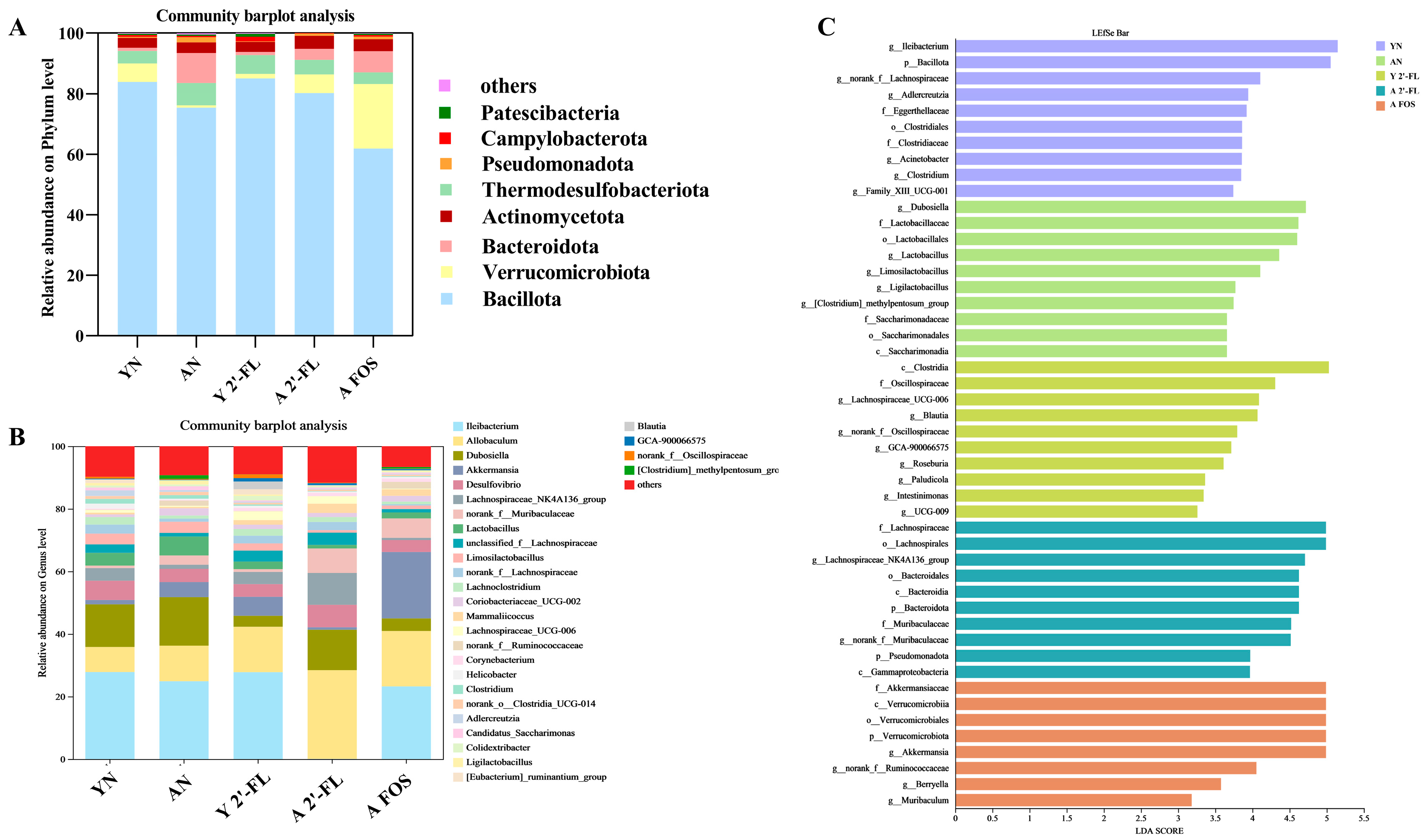 3.9. Effects of 2′-FL on the Gut Microbiota in Mice of Each Group