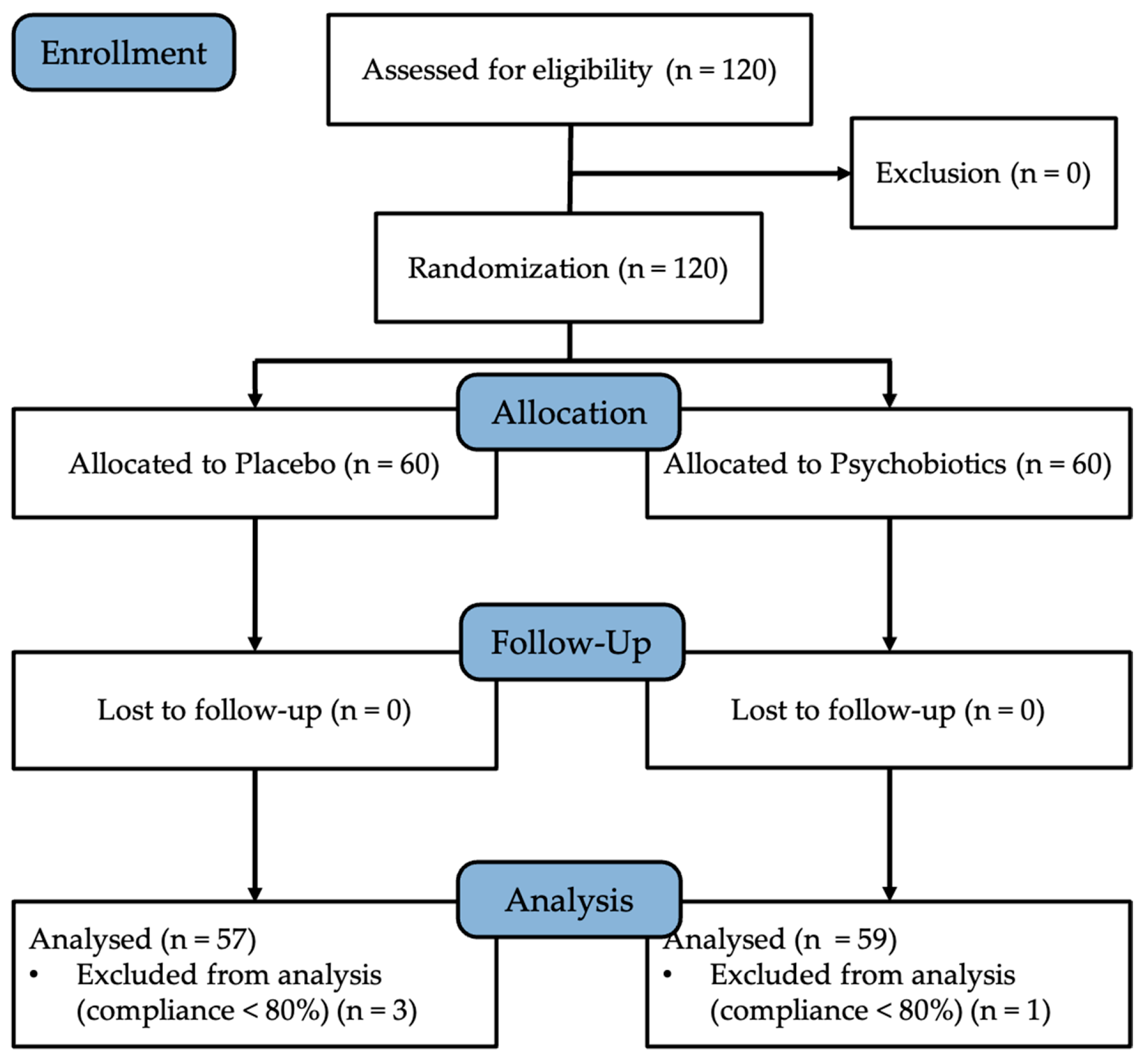| Placebo (n = 57) | Psychobiotics (n = 59) | ||||