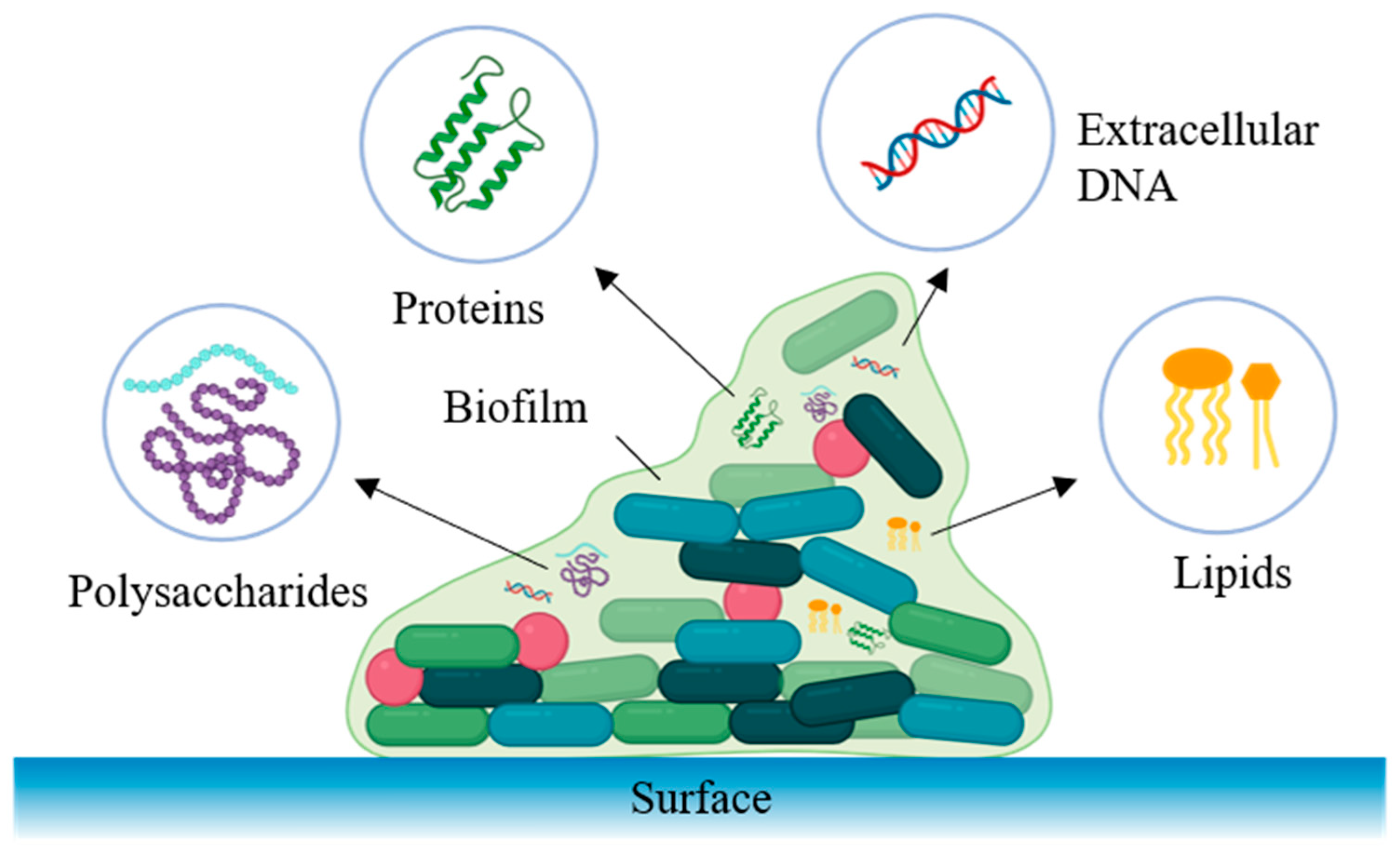 - Sauer, K.; Stoodley, P.; Goeres, D.M.; Hall-Stoodley, L.; Burmølle, M.; Stewart, P.S.; Bjarnsholt, T. The biofilm life cycle: Expanding the conceptual model of biofilm formation. Nat. Rev. Microbiol. 2022, 20, 608–620. [Google Scholar] [CrossRef] [PubMed]