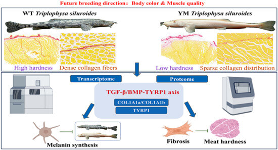 Ni, L.; Li, F.; Li, P.; Chen, Y.; Liu, Y.; Du, J.; Lai, J.; Liu, Y. Comparative Muscle Quality and Multiomic Analyses in Wild-Type and Yellow-Mutant Triplophysa siluroides: TGF-β/BMP-Mediated Covariation and Breeding for Muscle Quality. Foods 2025, 14, 4196. https://doi.org/10.3390/foods14244196
