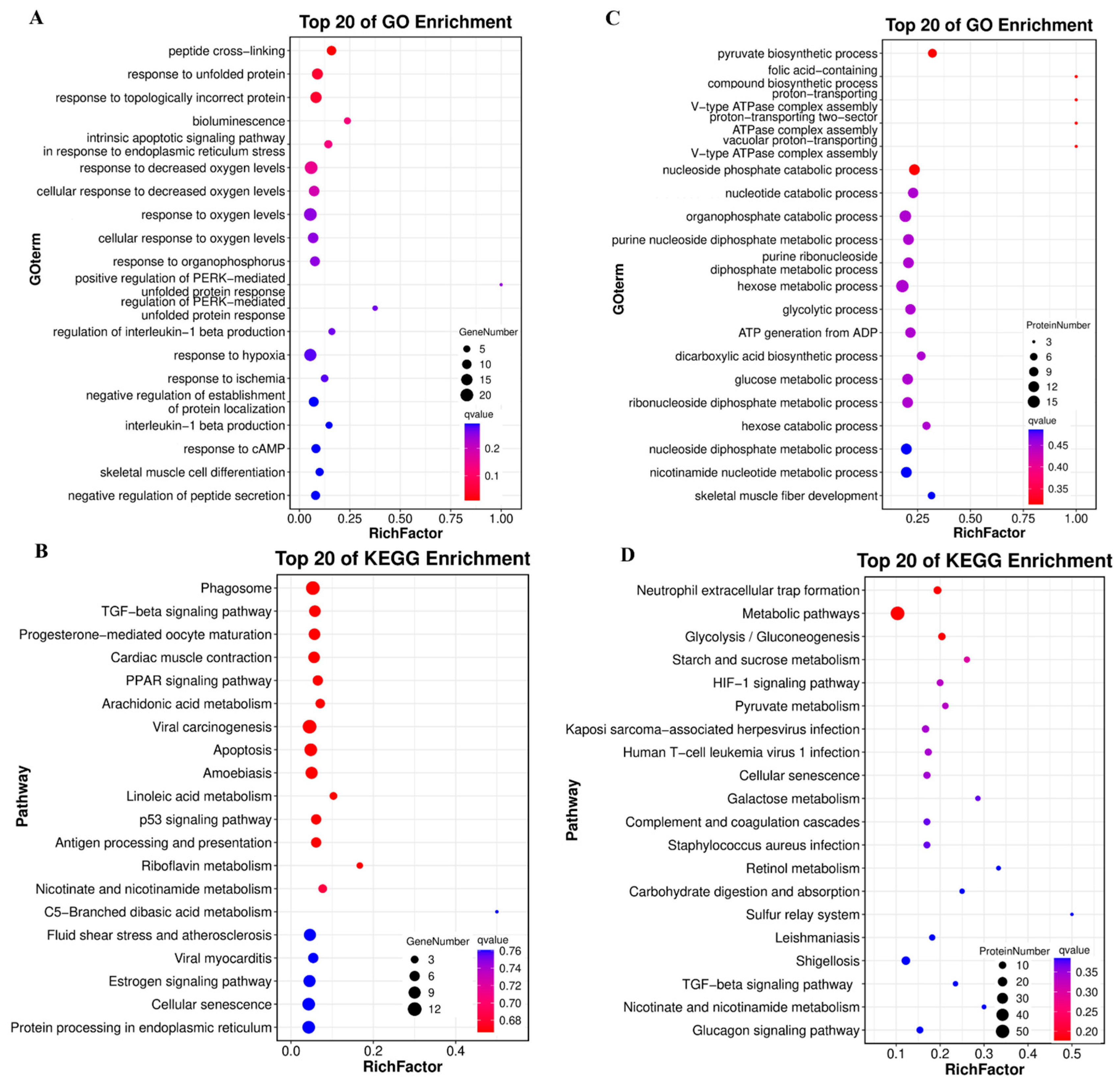3.4. Differential Transcriptomic and Proteomic Analyses