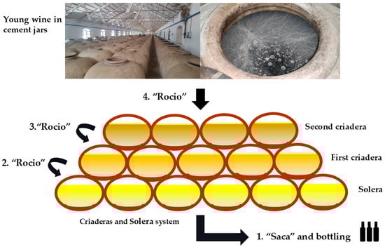This methodology, originating in southern Spain, is intimately linked to the metabolic activities of specialized flor yeasts that form biofilms on the wine surface and mediate biological aging via oxidative metabolism [2,3]. The Criaderas and Solera system is used to produce not only Sherry wines such as Amontillado, Fino, Oloroso and Palo Cortado, but also some naturally sweet wines such as Moscatel and Pedro Ximénez, as well as brandy and vinegar [1,2].