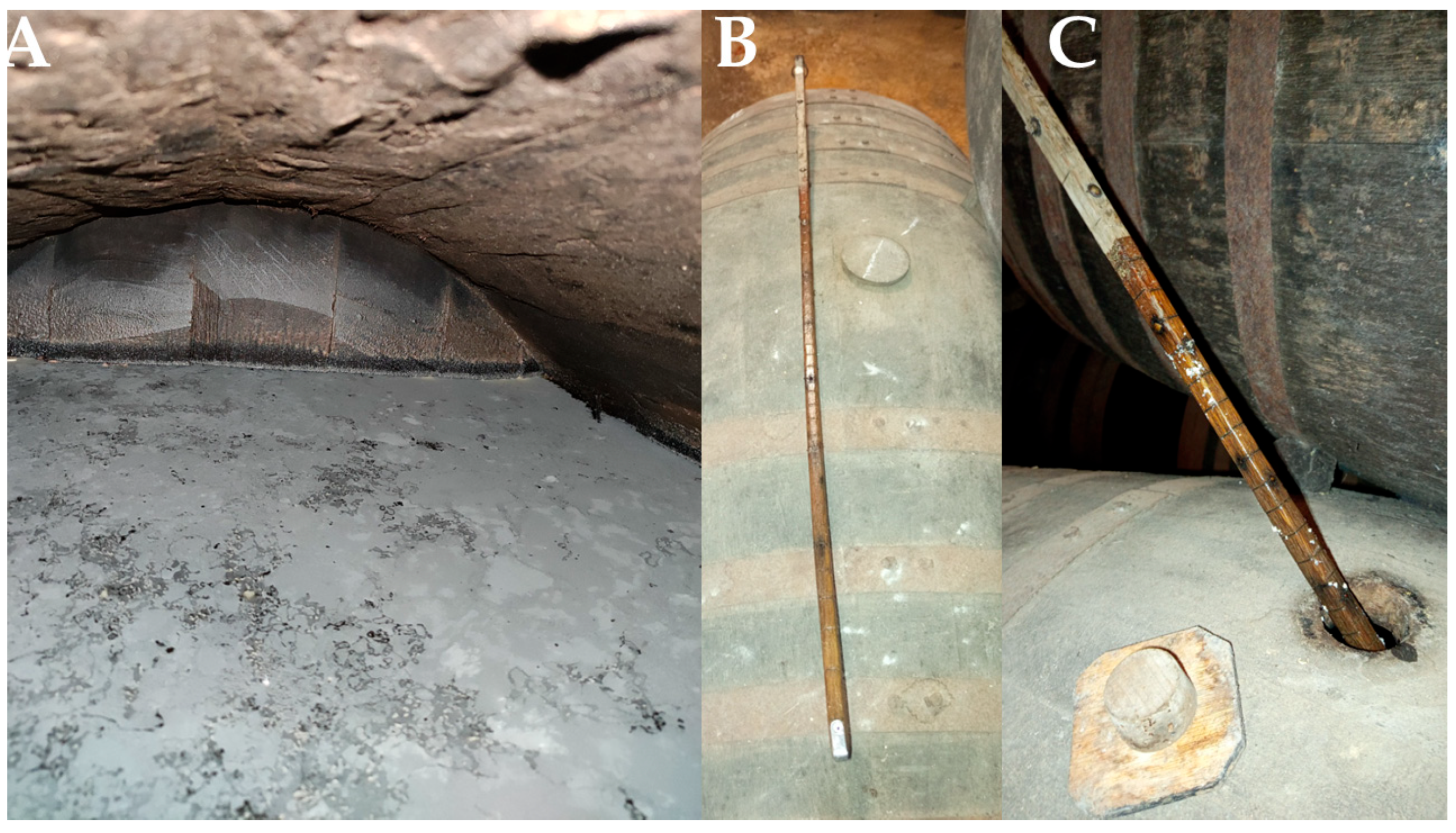 10]. The volume of wine inside the barrels is regularly monitored using a calibrated rod called “