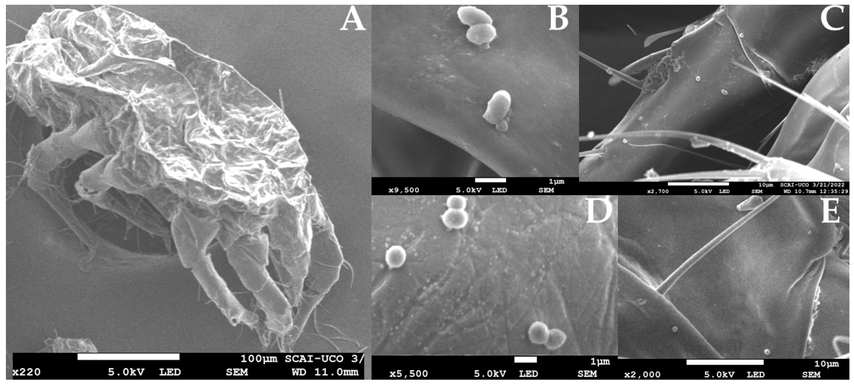 - Hubert, J.; Nesvorná, M.; Kopecký, J.; Ságová-Marečková, M.; Poltronieri, P. Carpoglyphus lactis (Acari: Astigmata) from Various Dried Fruits Differed in Associated Microorganisms. J. Appl. Microbiol. 2015, 118, 470–484. [Google Scholar] [CrossRef]