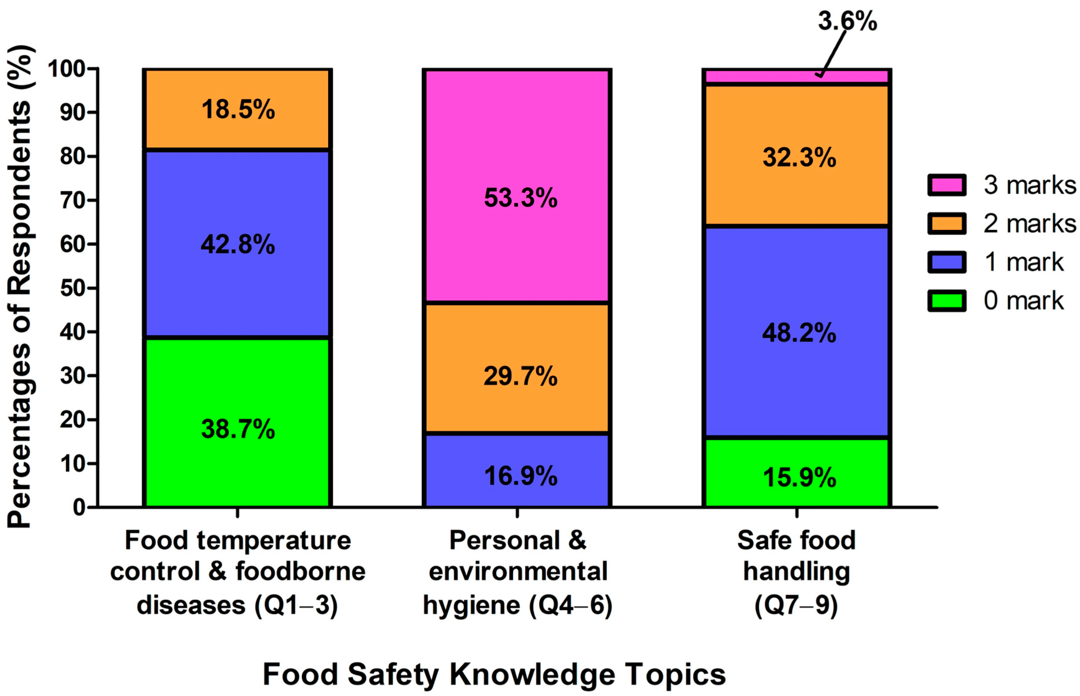 Table 4). Their food safety knowledge was assessed by their awareness on food temperature control and foodborne diseases (Question 1–3), personal and environmental hygiene (Question 4–6), as well as safe food handling (Question 7–9).
