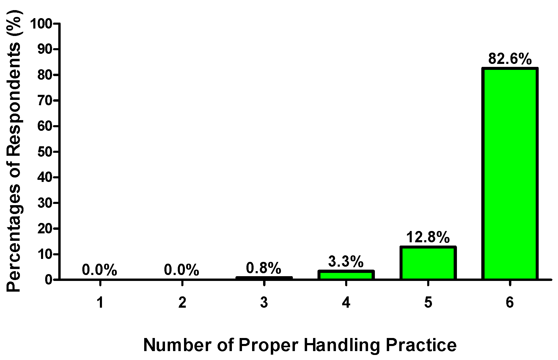 Figure 5). Almost all respondents showed at least three proper practices in safe food handling.