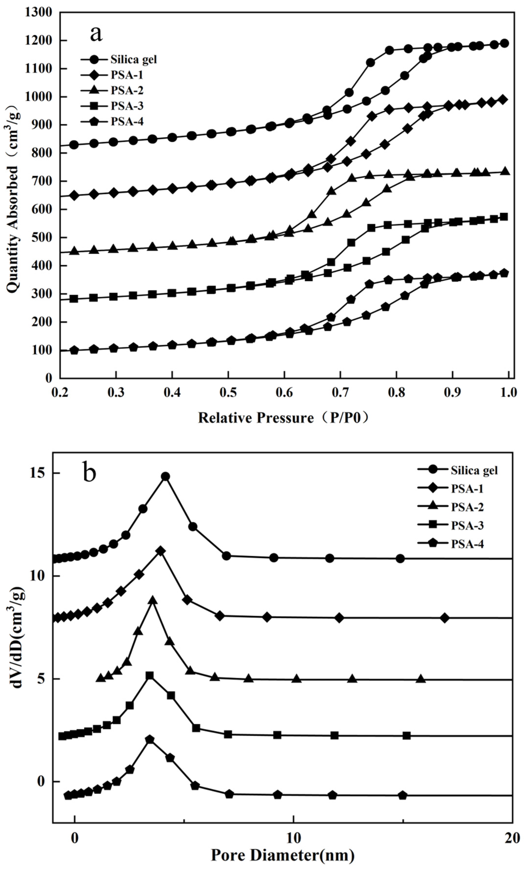 - Cao, M.; Liu, X.; Gong, X.; Yang, X.; Fang, J.; Liu, J. Mesoporous Core/Shell Structured Silica Gel Composites with Hydrazide-Modified Polyacrylate for High-Efficiency Removal of Formaldehyde with Reduced Carbon Emission Effect. Sep. Purif. Technol. 2025, 370, 133273. [Google Scholar] [CrossRef]